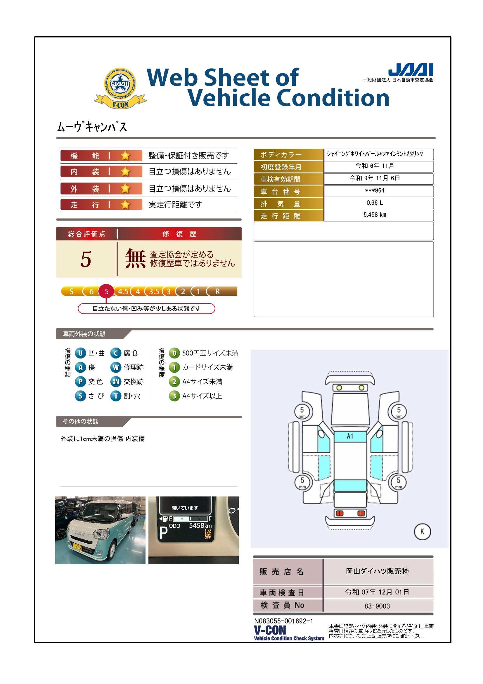 | 車両状態評価書 | ※クリックすると開きます![]() |