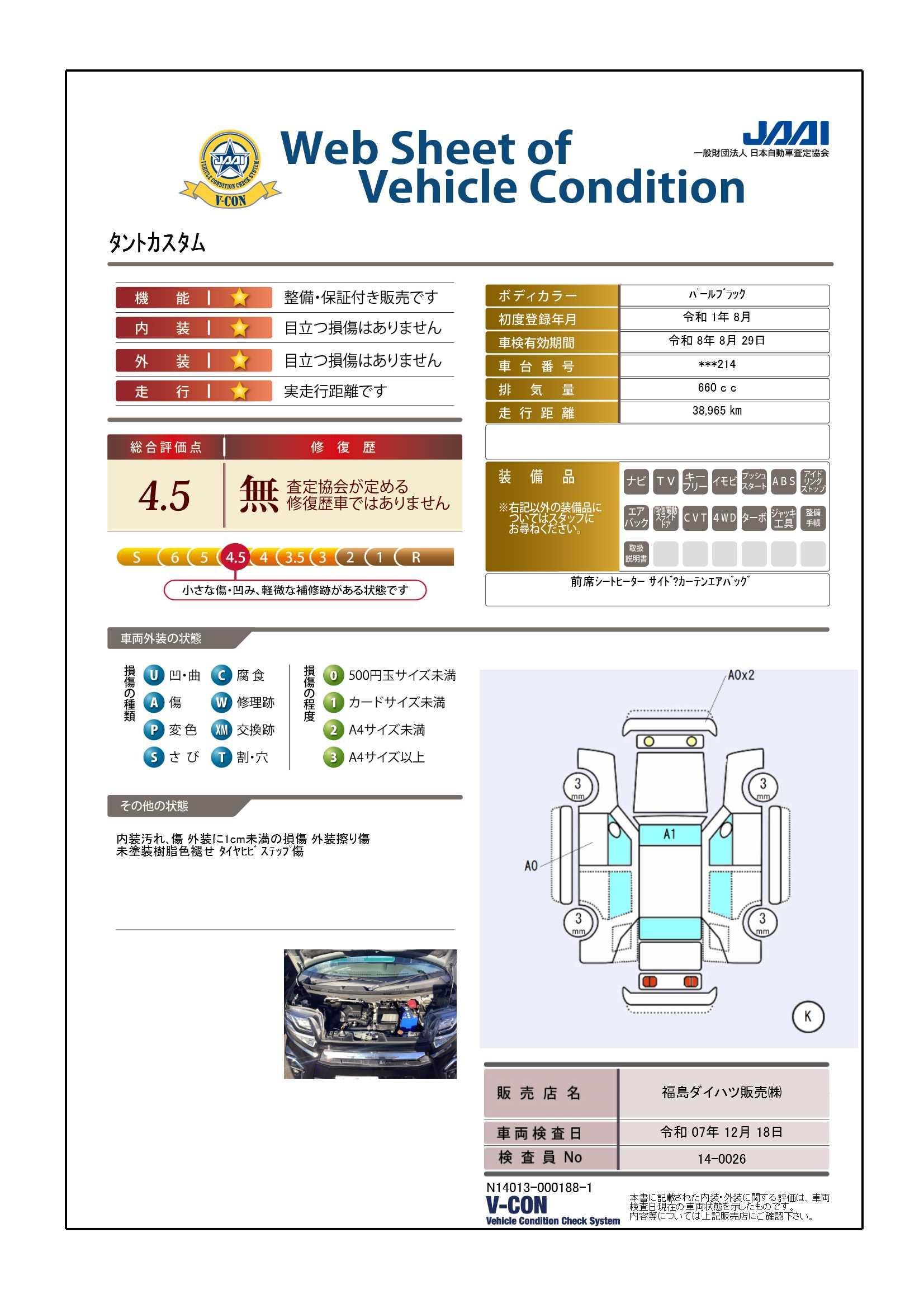 車両保証(タント カスタムRS:福島ダイハツ販売 (株) ふくしま郷野目店)