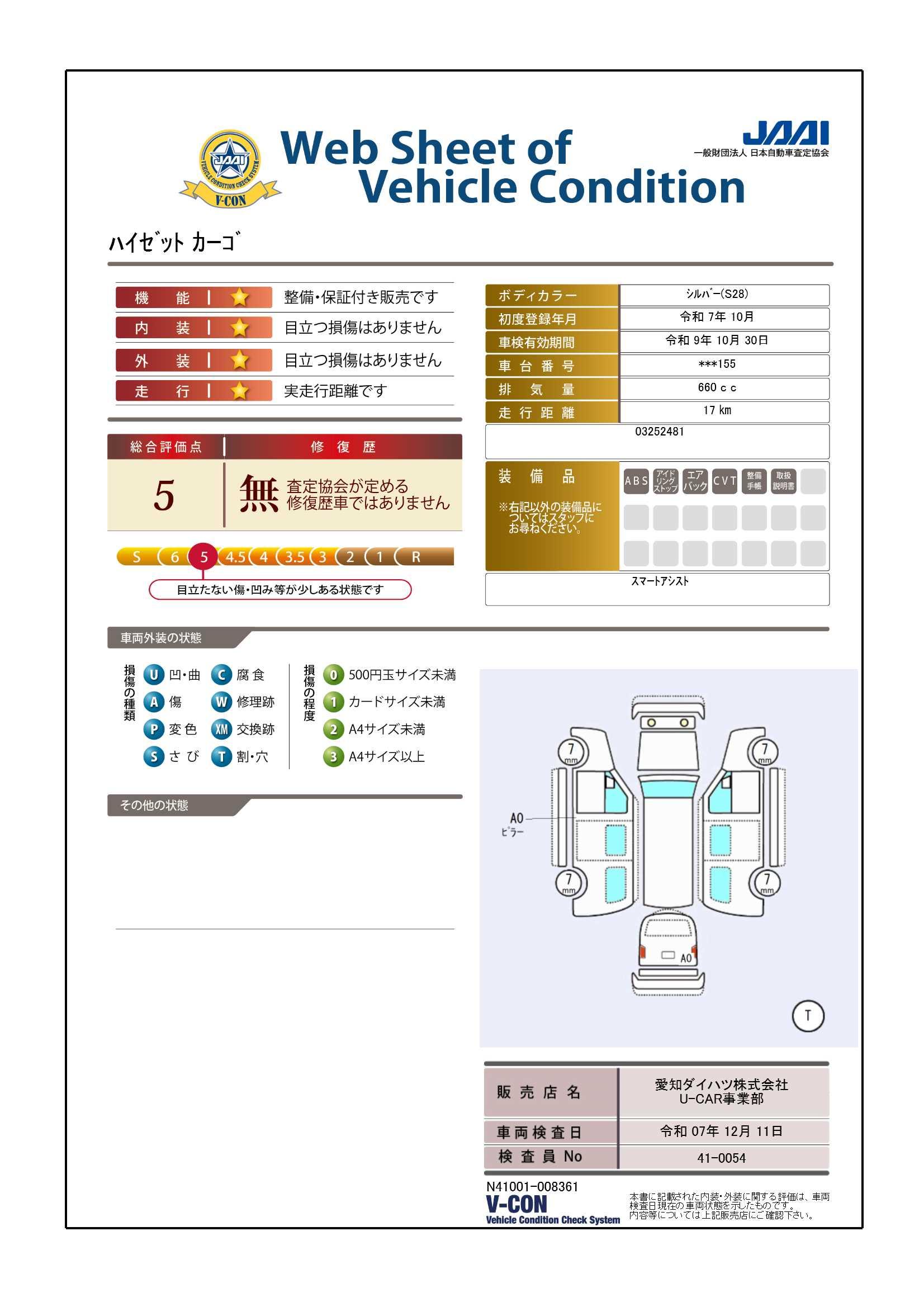 | 車両状態評価書 | ※クリックすると開きます![]() |