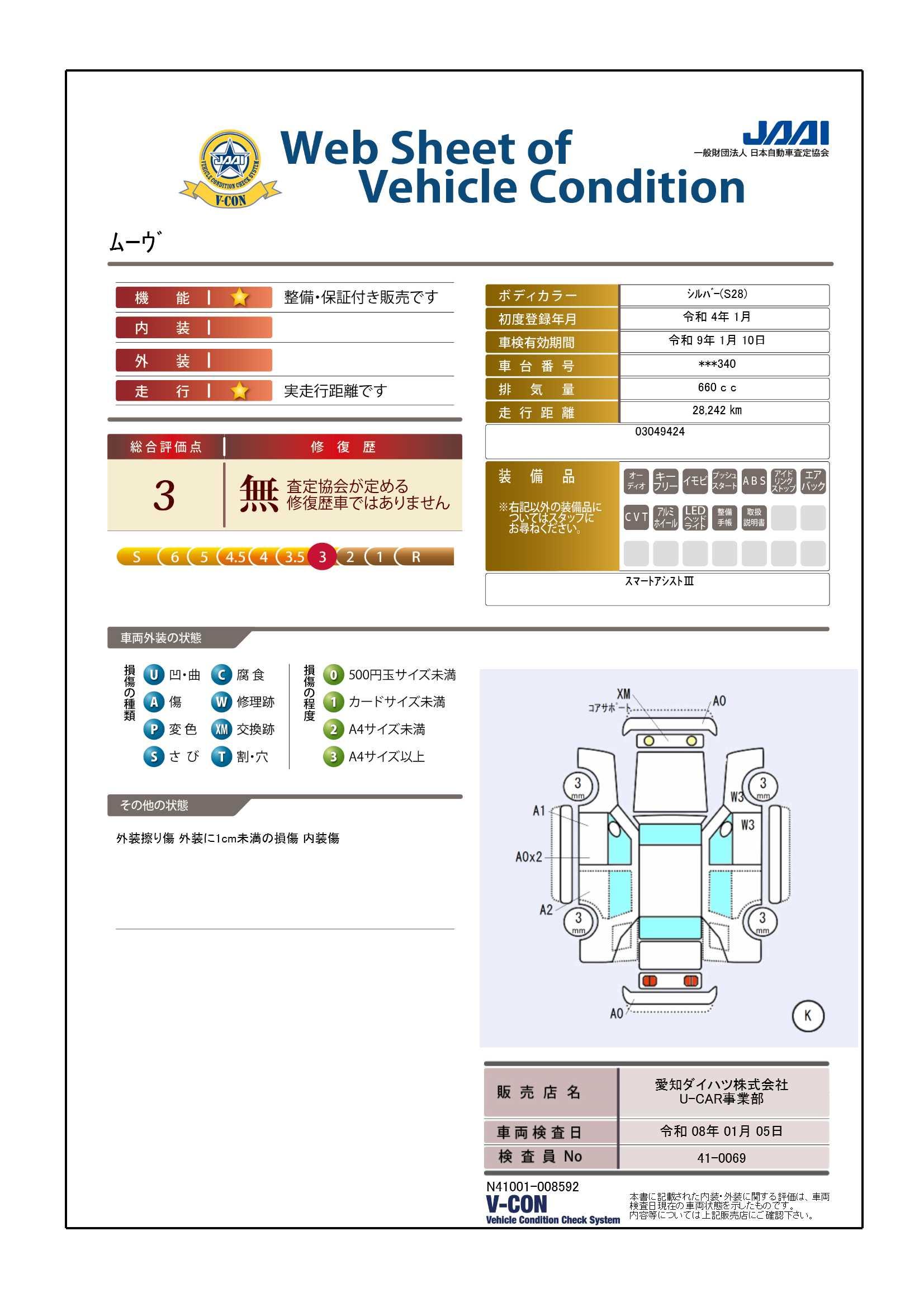 | 車両状態評価書 | ※クリックすると開きます![]() |
