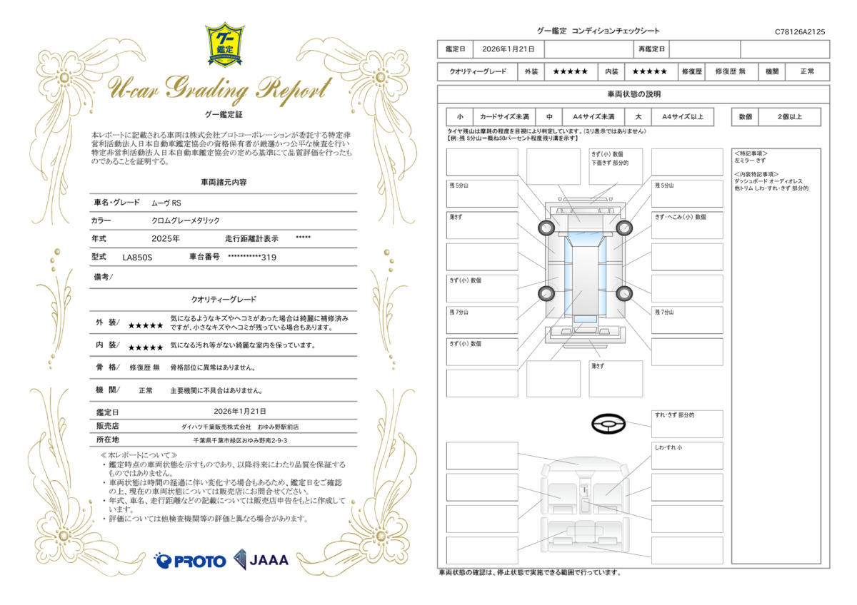 | 車両状態評価書 | ※クリックすると開きます![]() |
