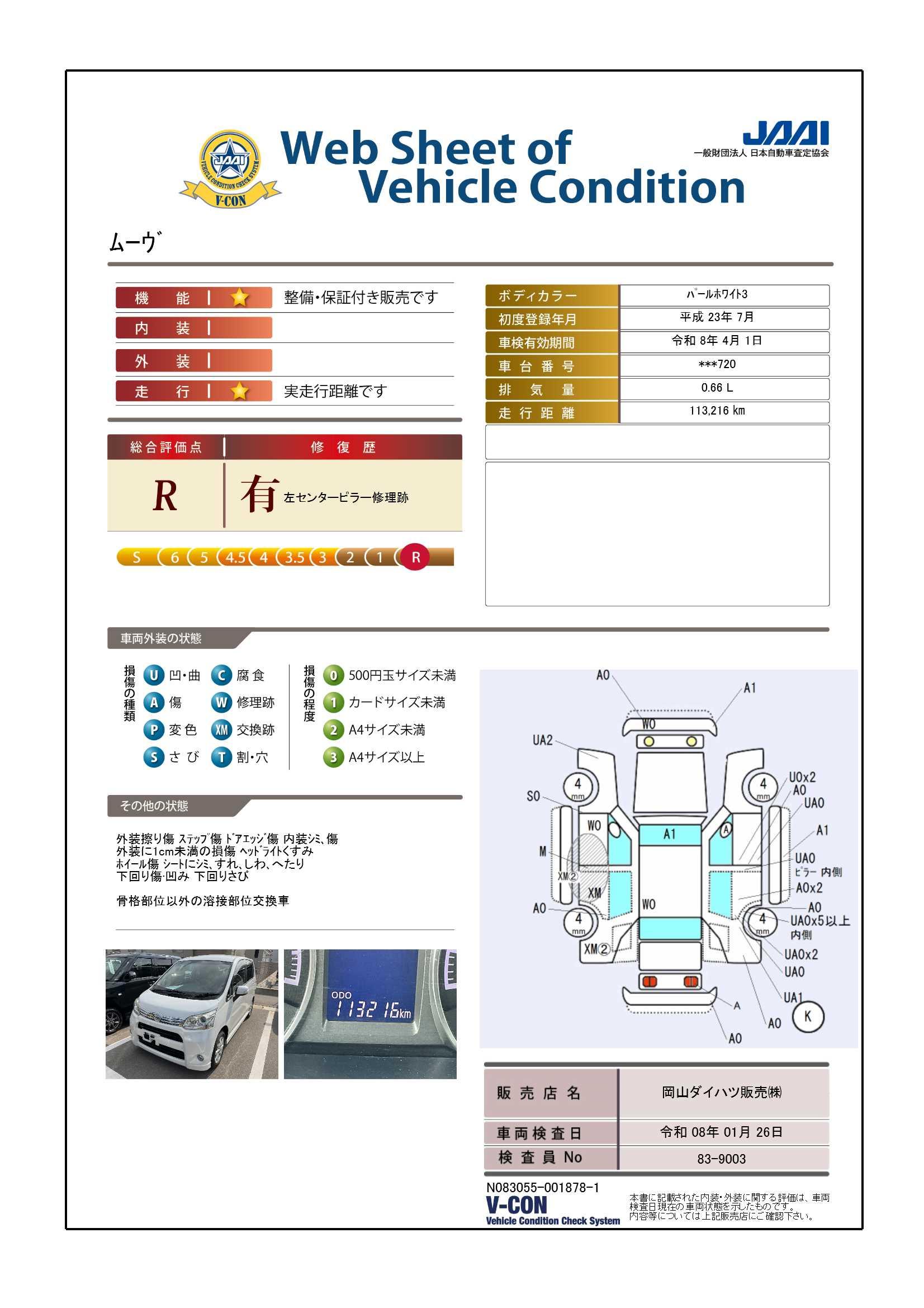| 車両状態評価書 | ※クリックすると開きます![]() |