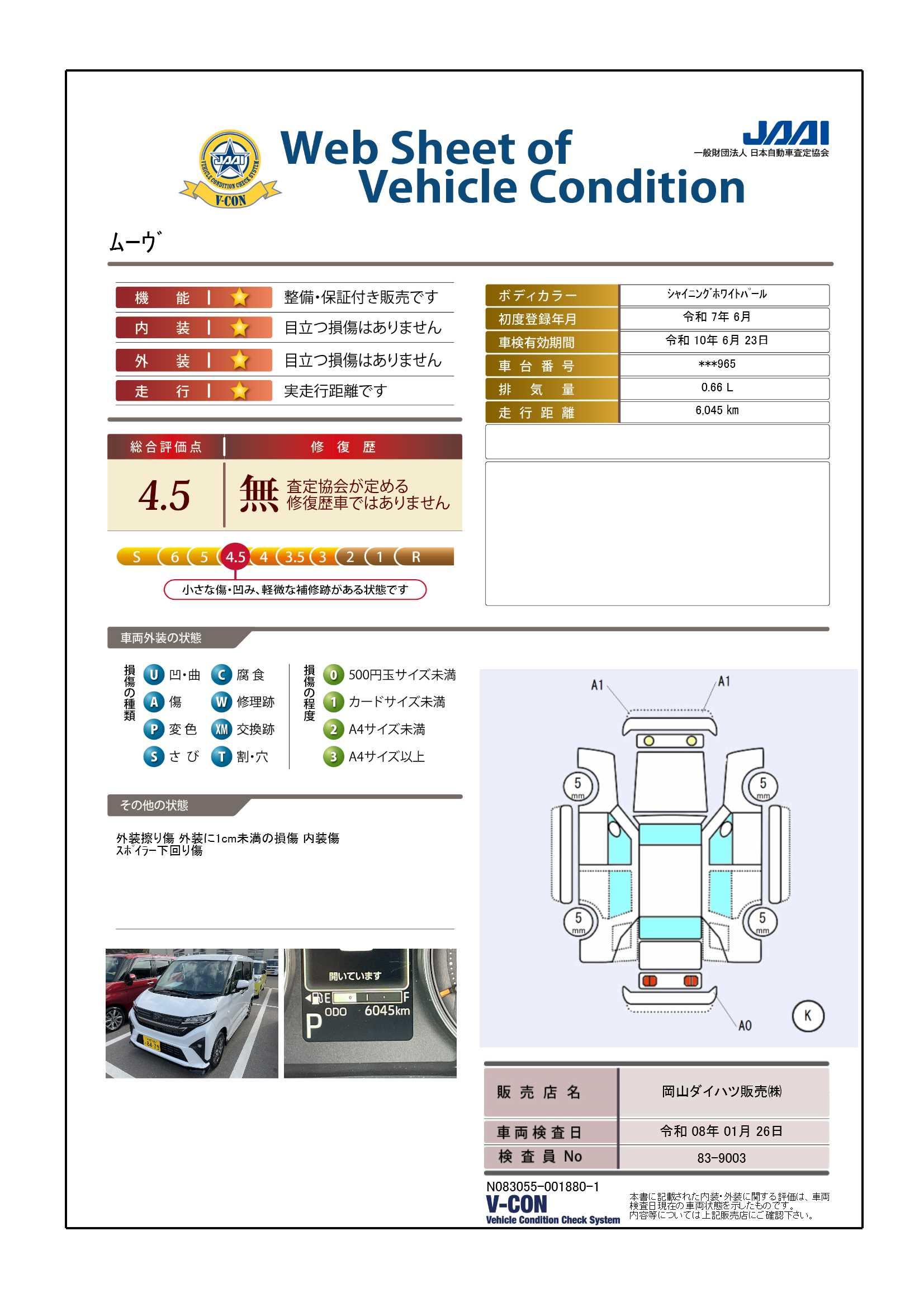 | 車両状態評価書 | ※クリックすると開きます![]() |