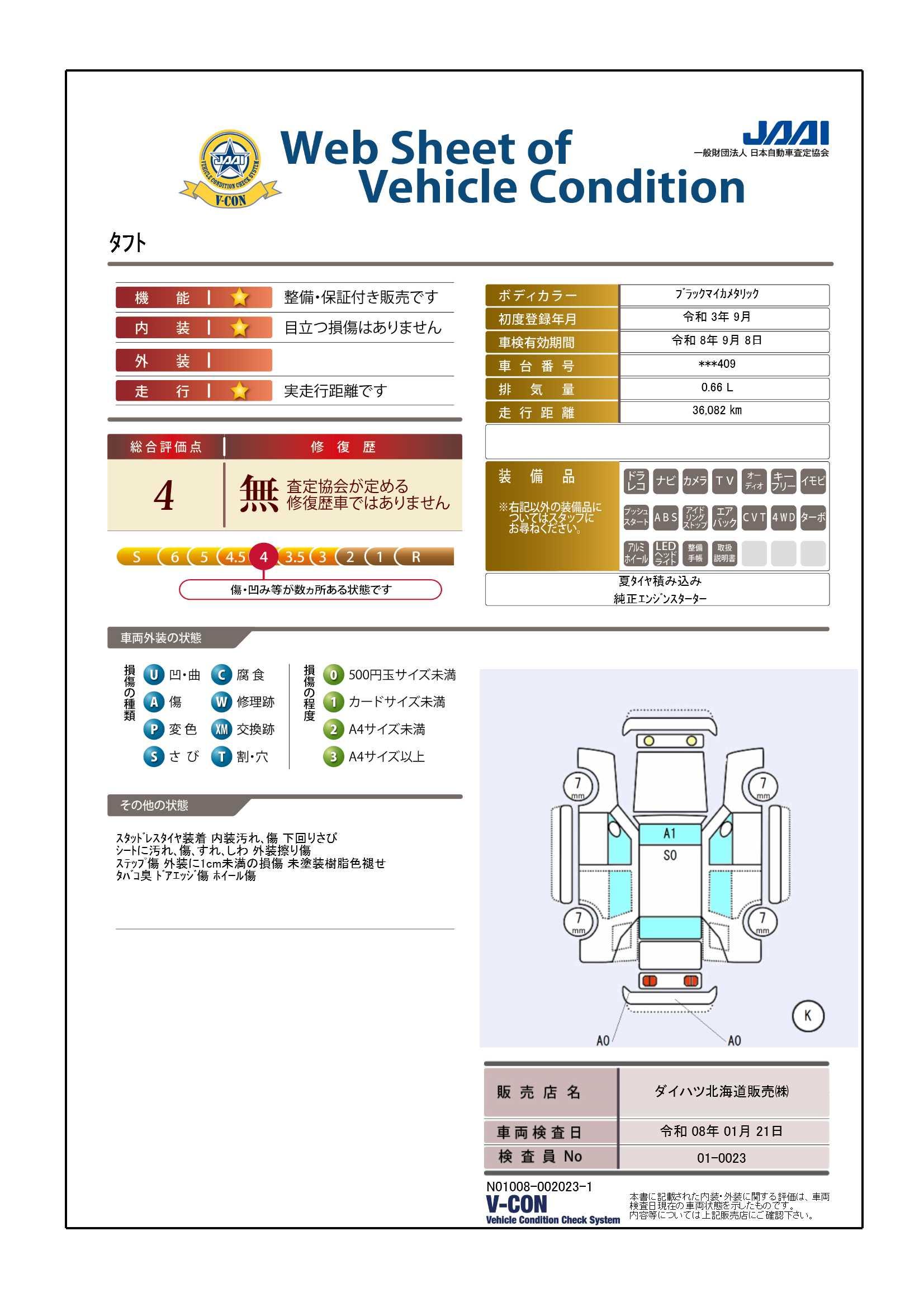 | 車両状態評価書 | ※クリックすると開きます![]() |