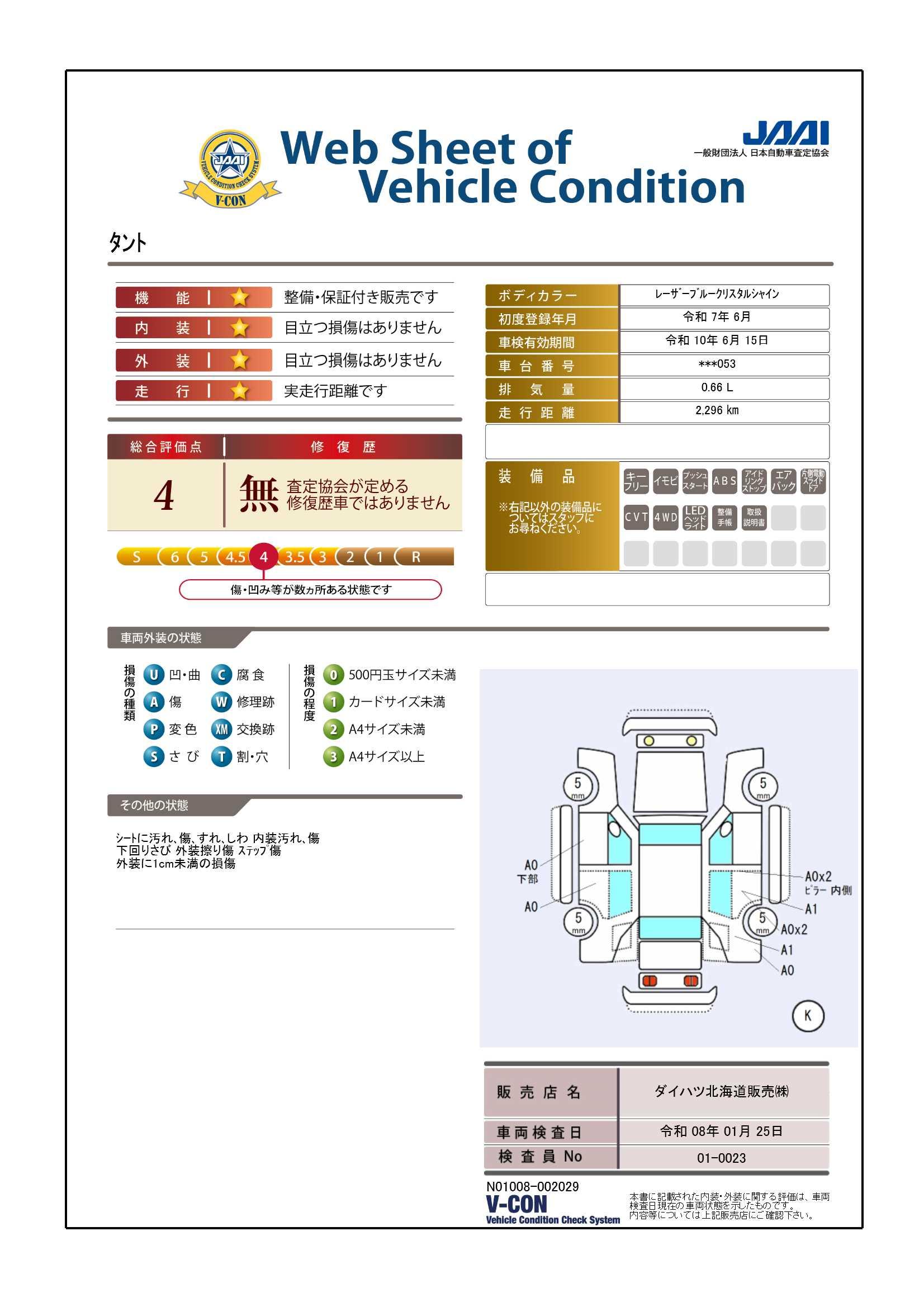 | 車両状態評価書 | ※クリックすると開きます![]() |