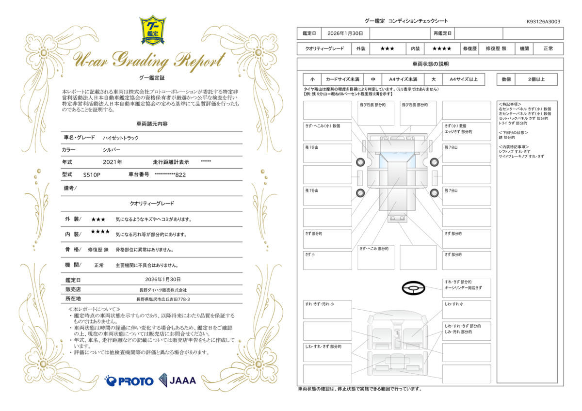 | 車両状態評価書 | ※クリックすると開きます![]() |