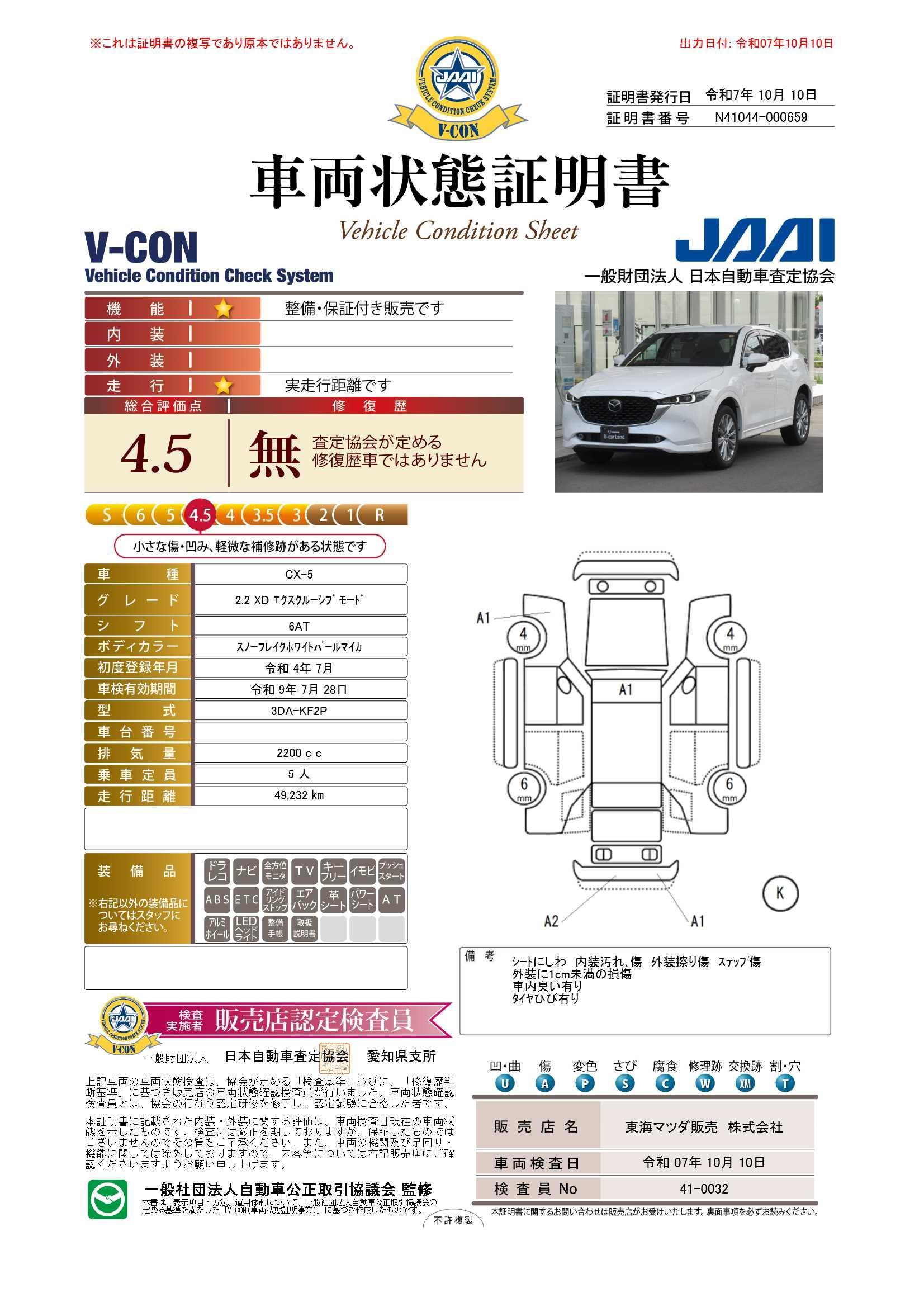車両保証(CX-5 XD エクスクルーシブモード:東海マツダ販売(株) 三河安城店)