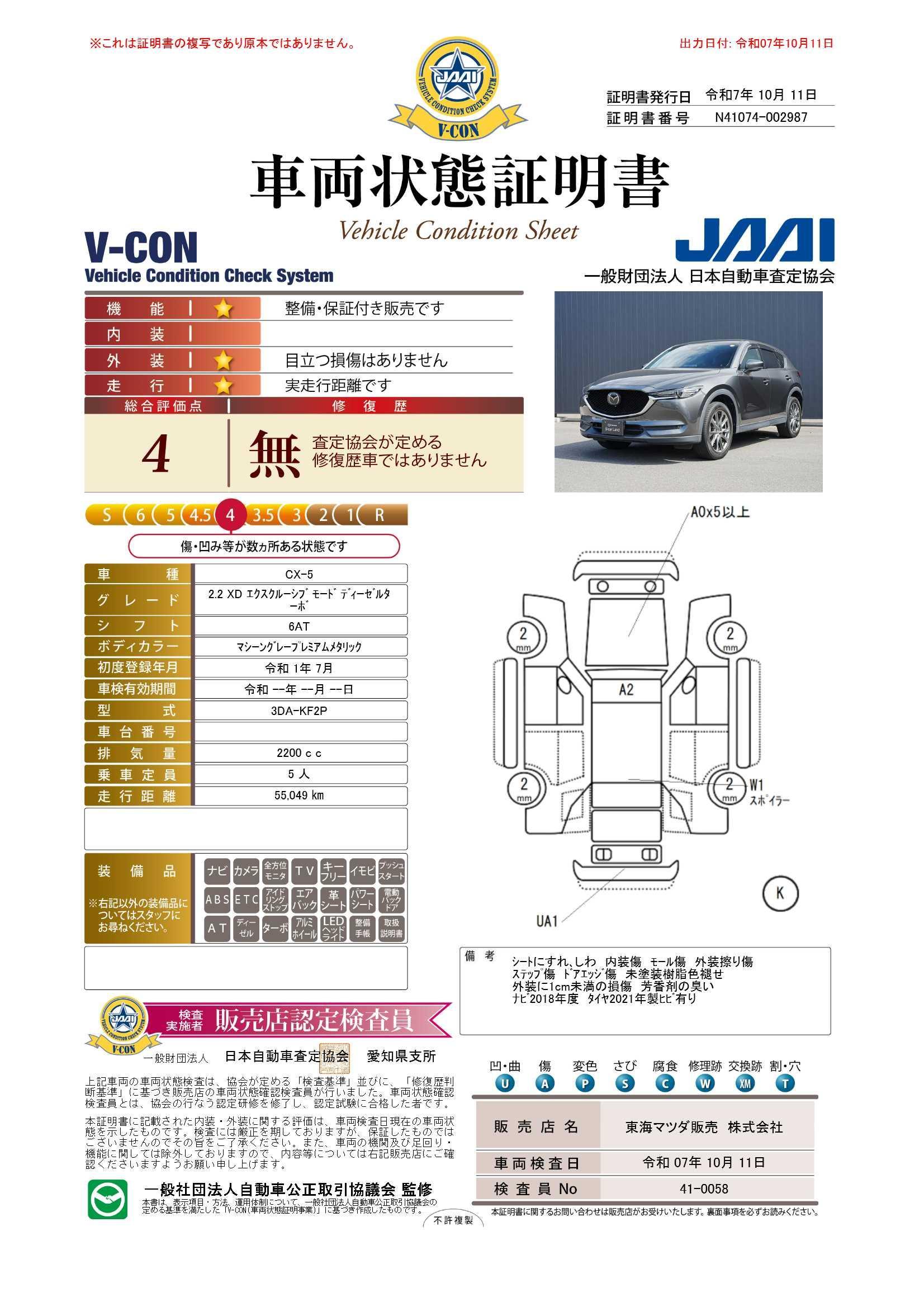 車両保証(CX-5 XD エクスクルーシブモード:東海マツダ販売(株) 名岐店)