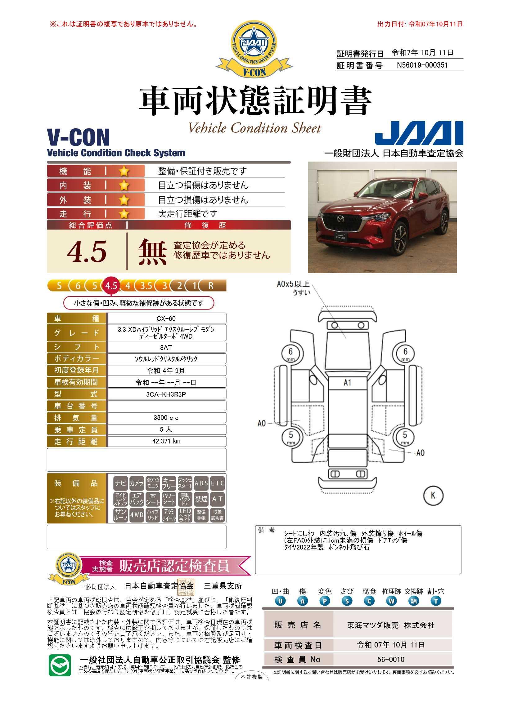 車両保証(CX-60 XD-ハイブリッド プレミアムモダン:東海マツダ販売(株) 津店(津ユーカーランド))