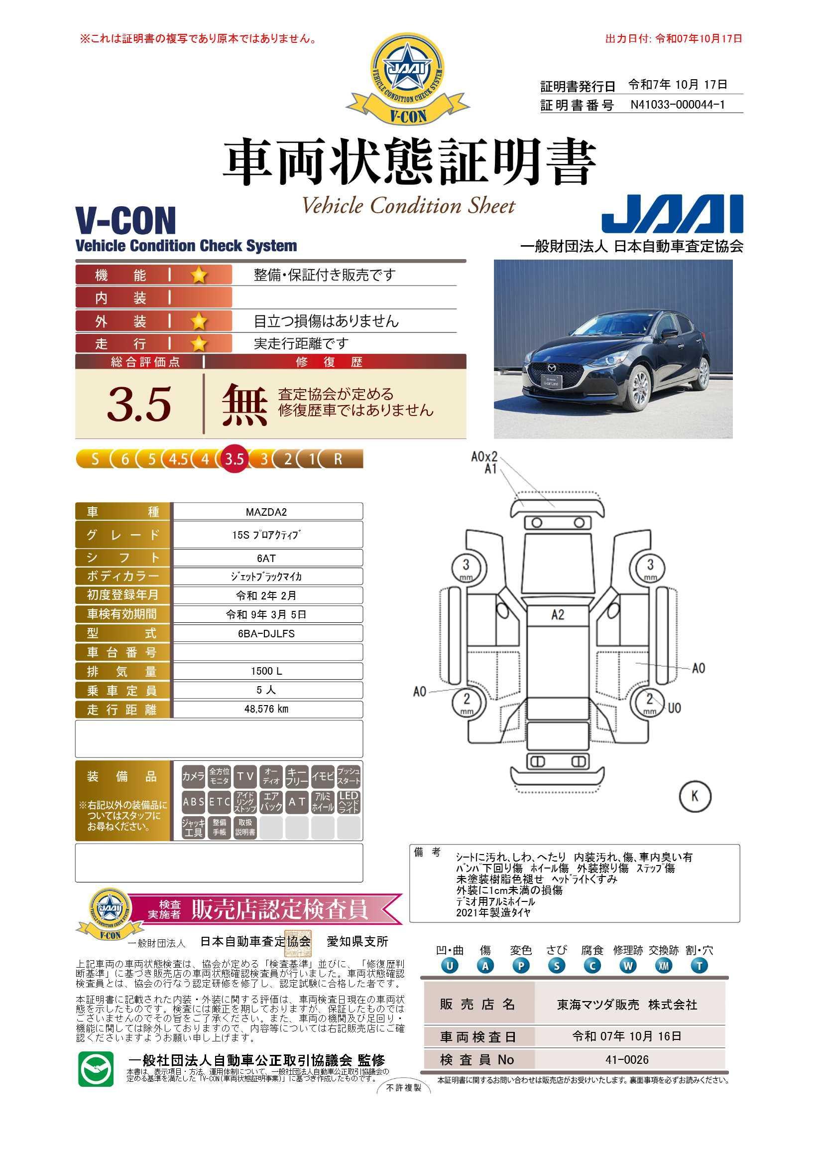 車両保証(MAZDA2 15Sプロアクティブ:東海マツダ販売(株) 名岐店)