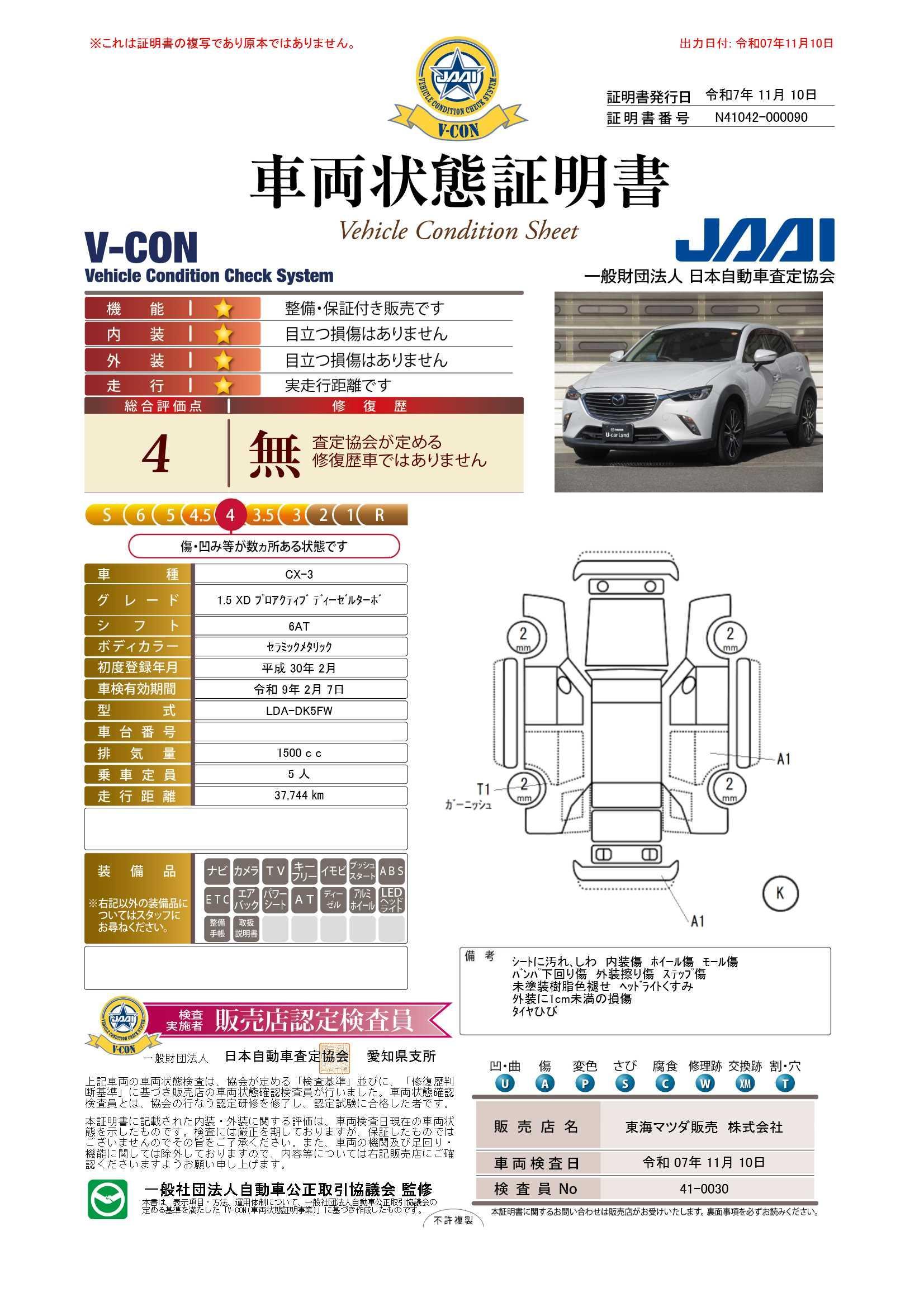車両保証(CX-3 XD プロアクティブ:東海マツダ販売(株) 平針店)