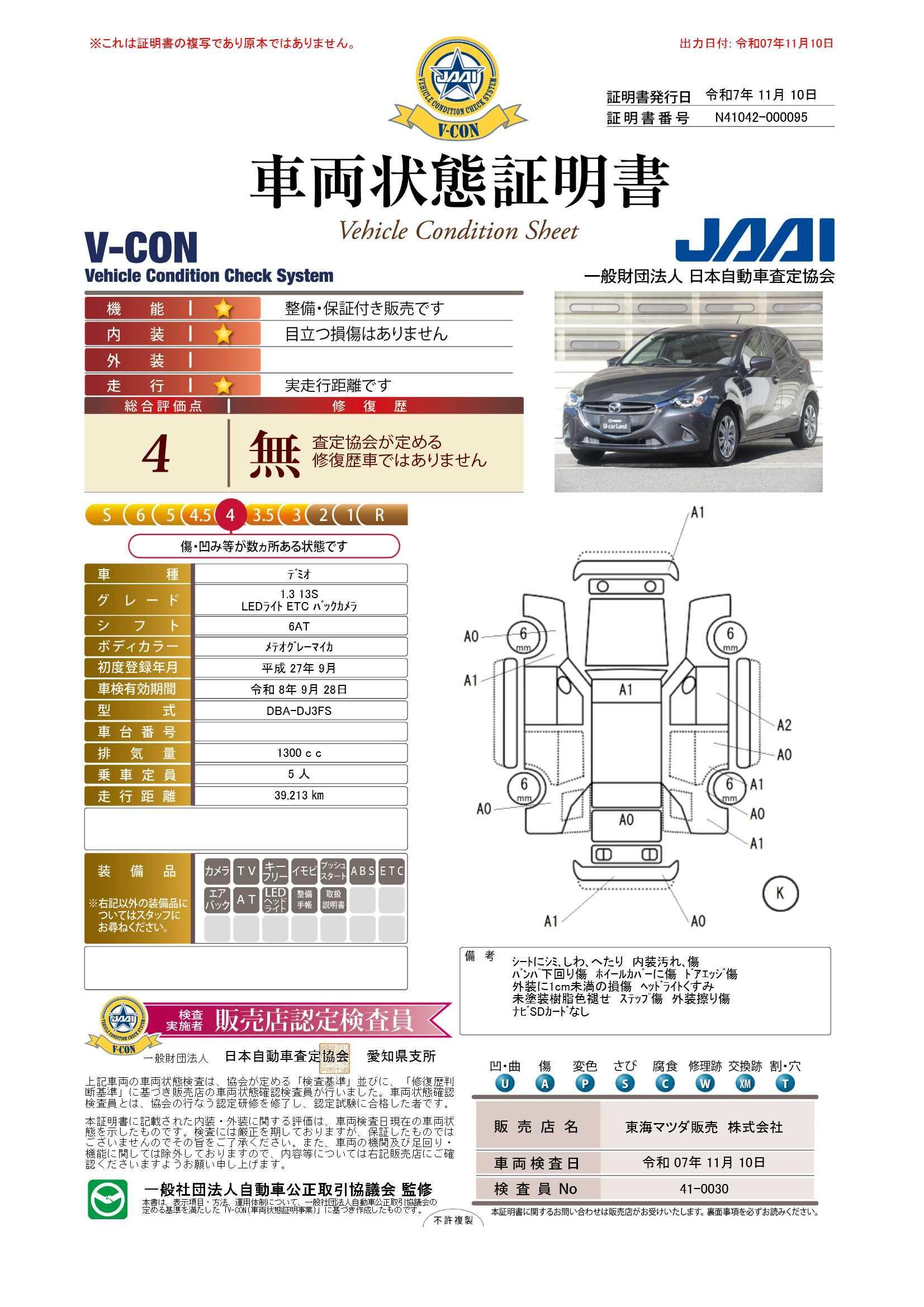| 車両状態評価書 | ※クリックすると開きます![]() |