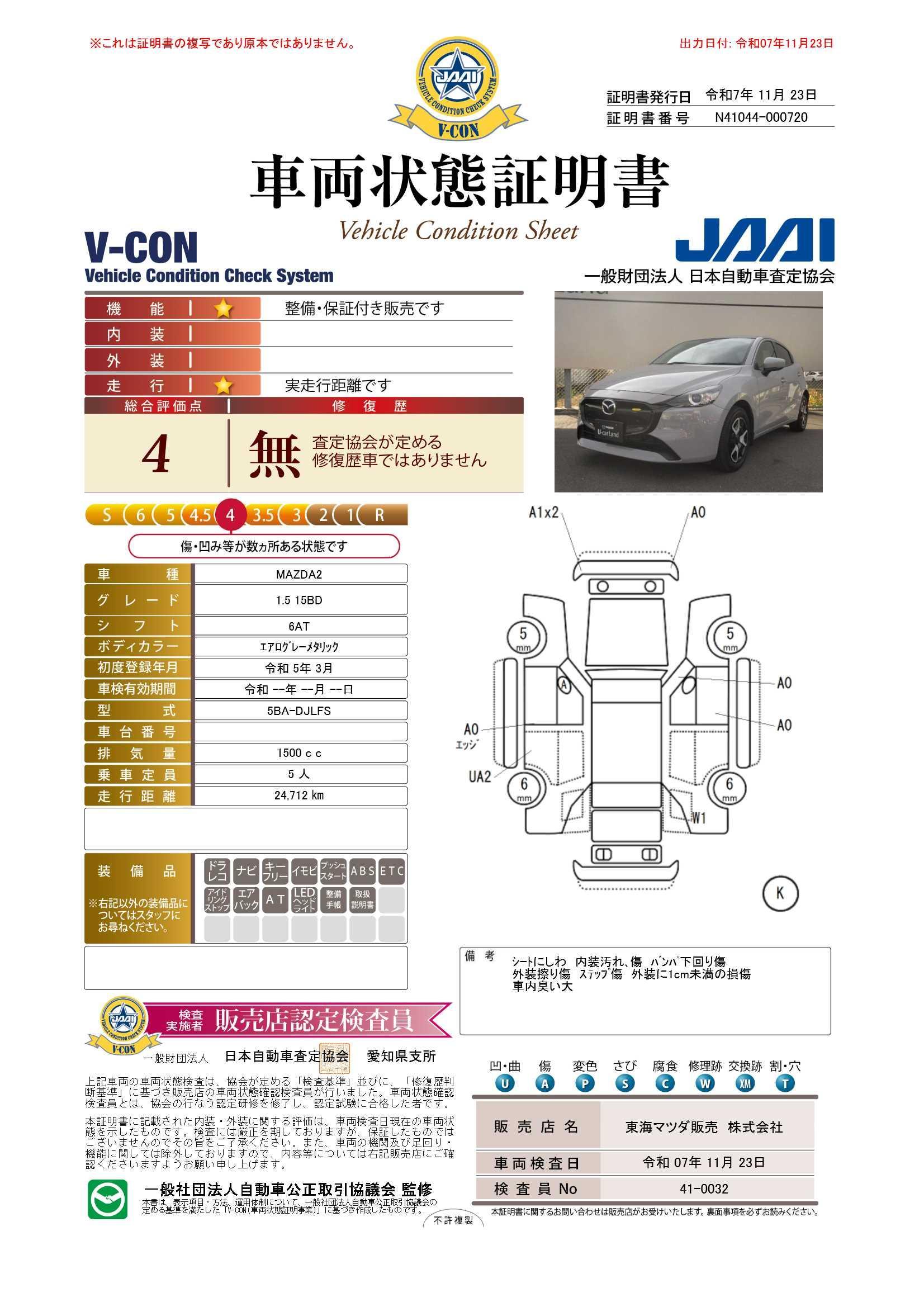 | 車両状態評価書 | ※クリックすると開きます![]() |