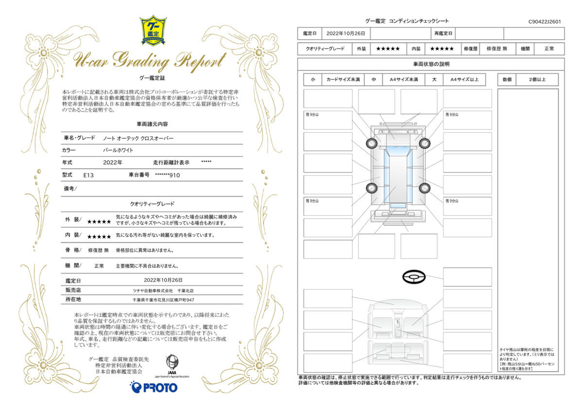 | 車両状態評価書 | ※クリックすると開きます![]() |