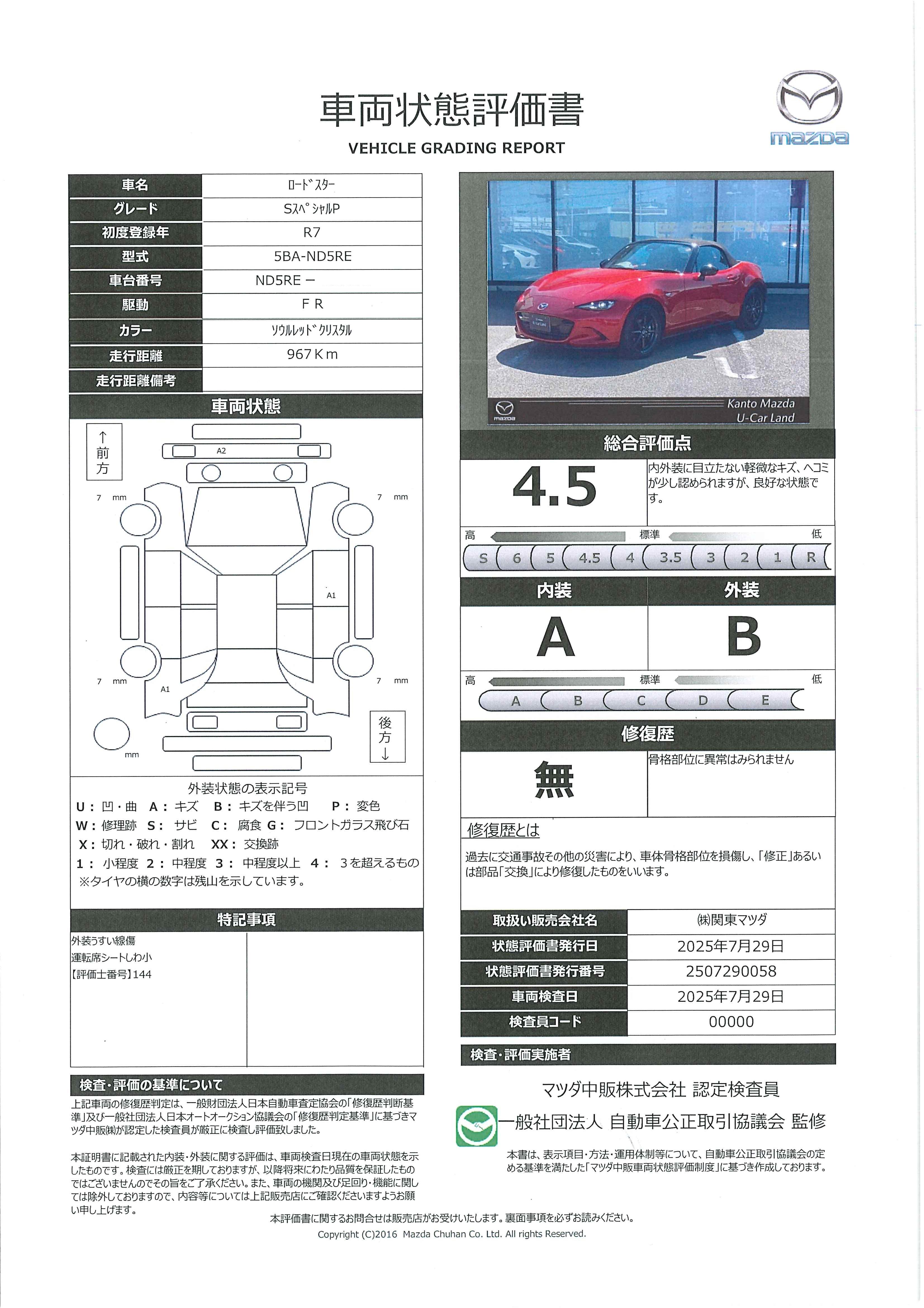 | 車両状態評価書 | ※クリックすると開きます![]() |