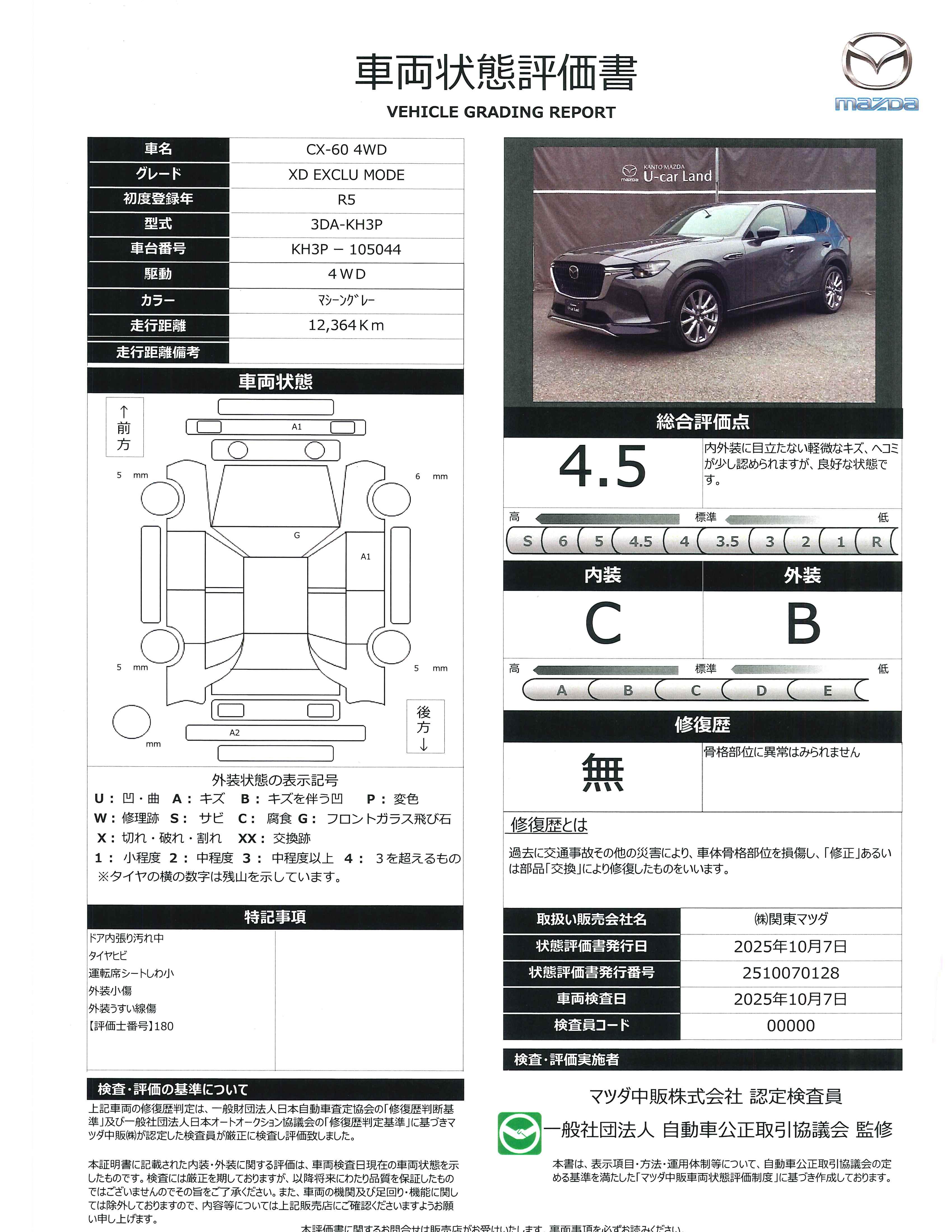 車両状態評価書 | ※クリックすると開きます![]() |