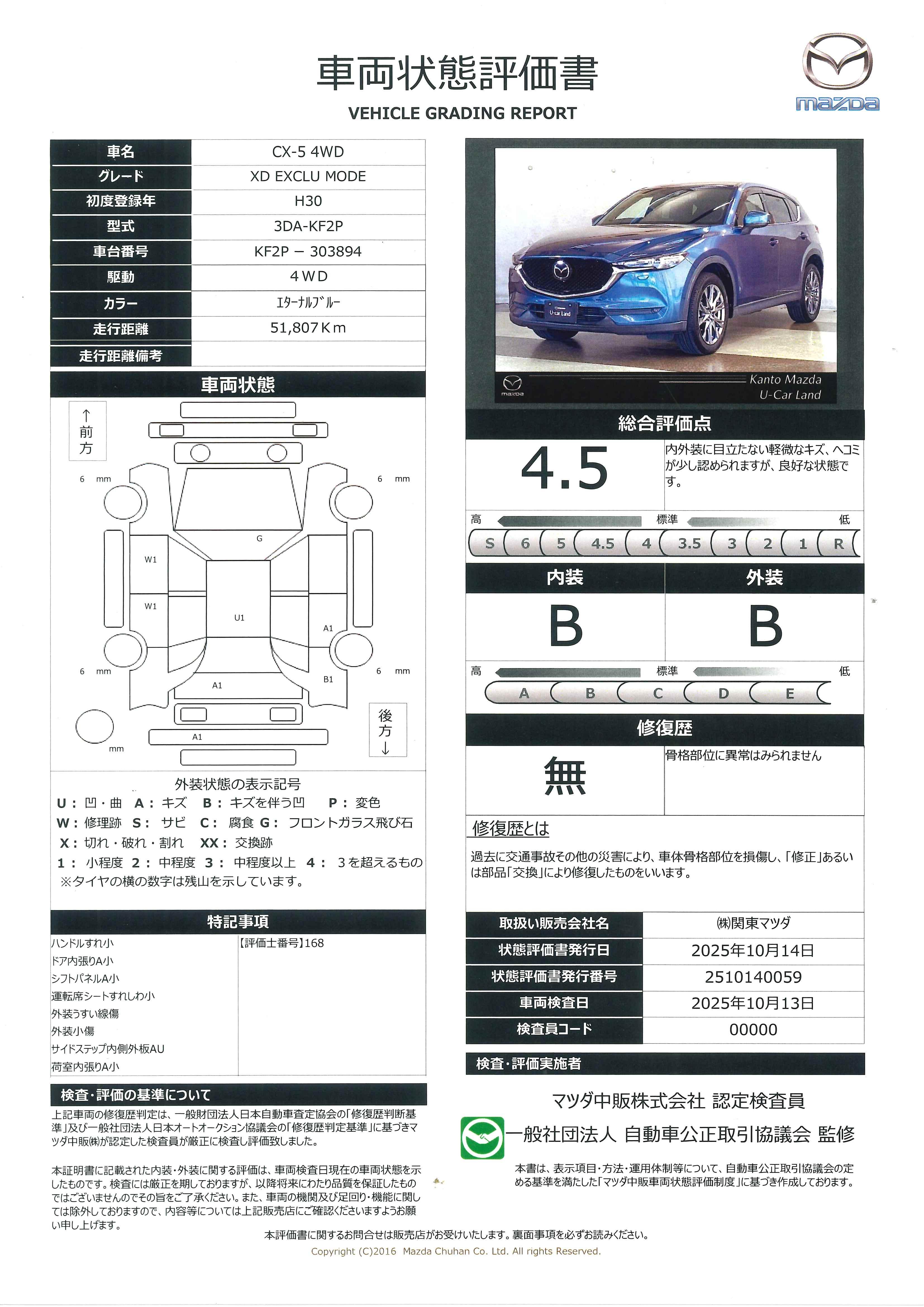 車両保証(CX-5 XD エクスクルーシブモード:(株)関東マツダ 本庄店)