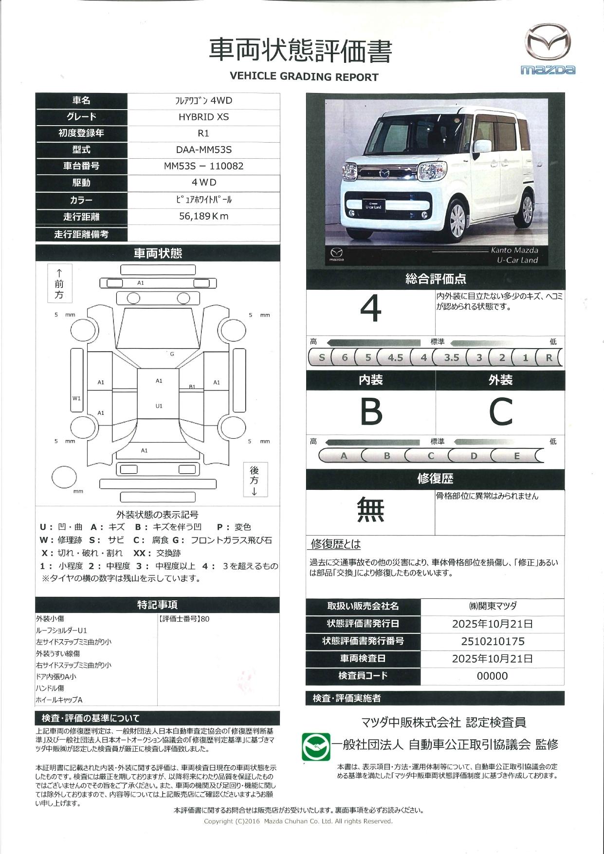 | 車両状態評価書 | ※クリックすると開きます![]() |