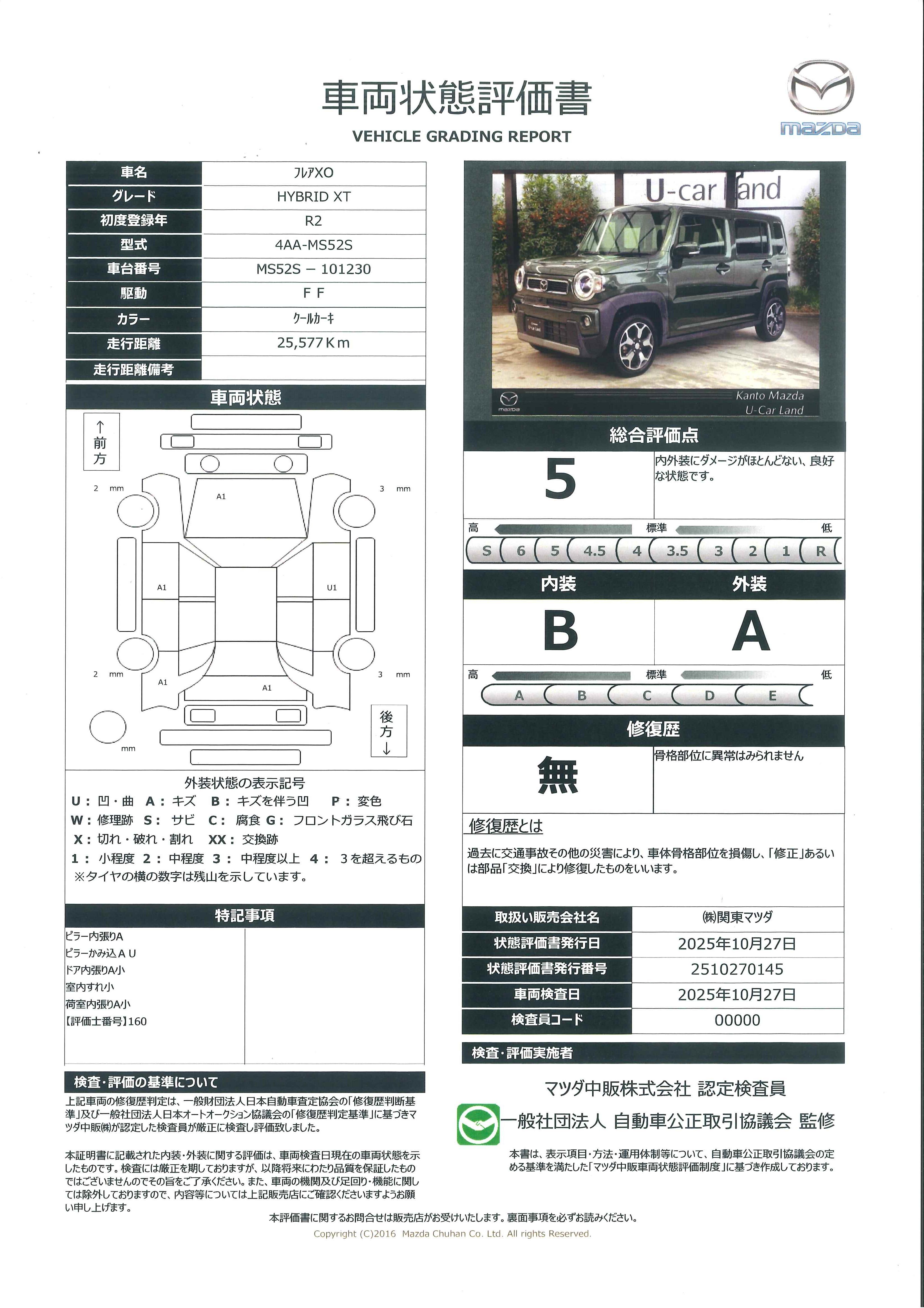 | 車両状態評価書 | ※クリックすると開きます![]() |