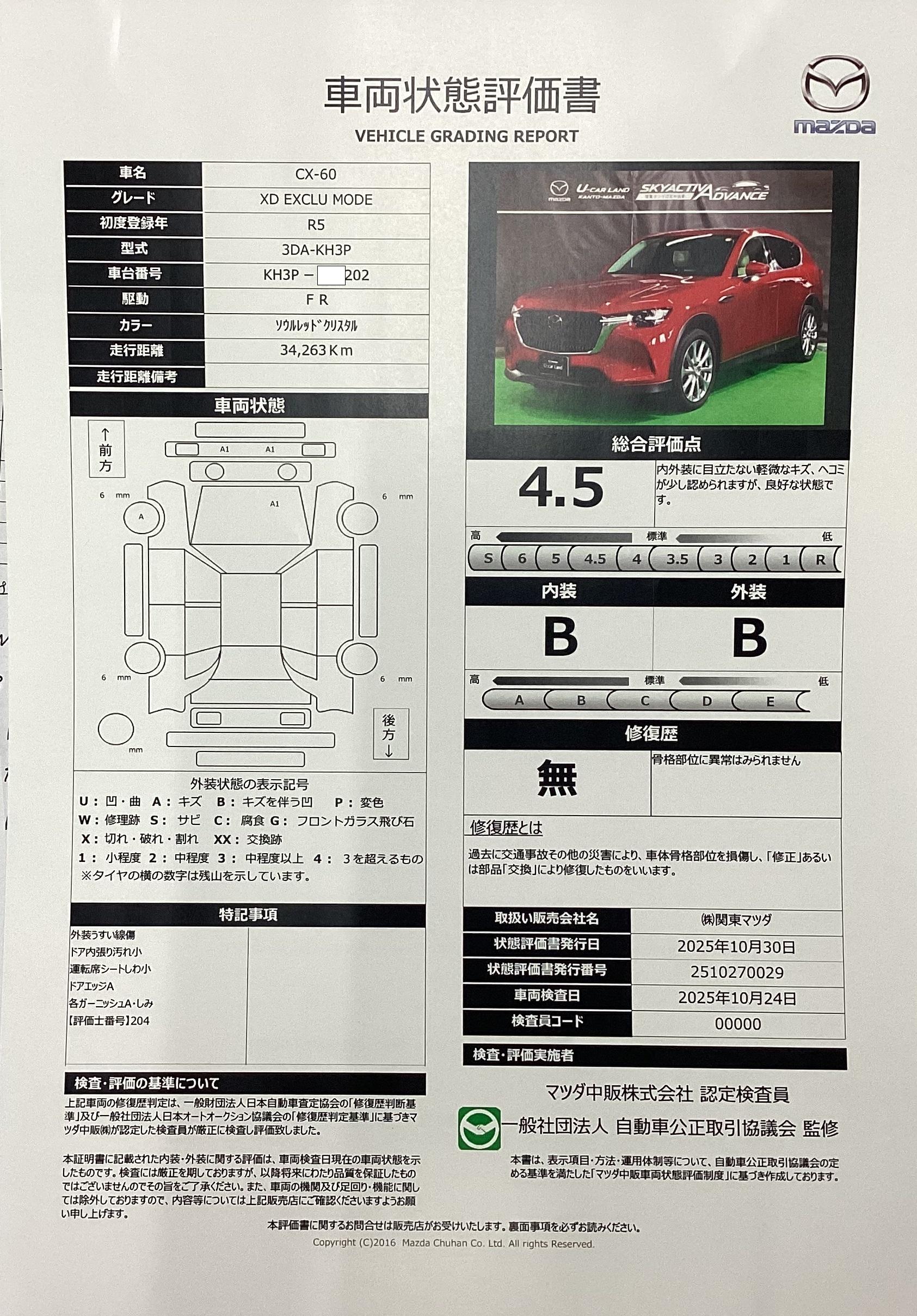 | 車両状態評価書 | ※クリックすると開きます![]() |