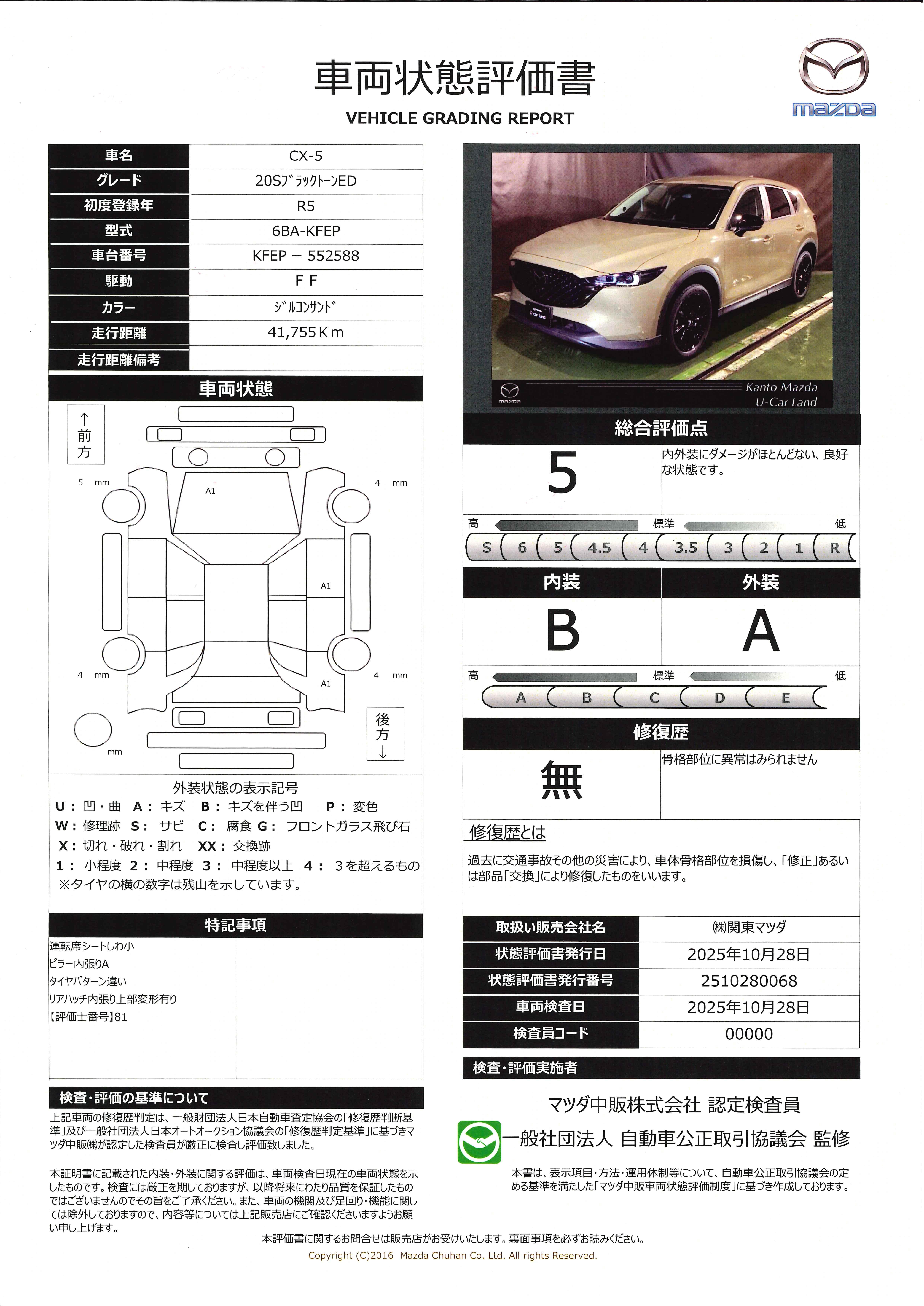 | 車両状態評価書 | ※クリックすると開きます![]() |