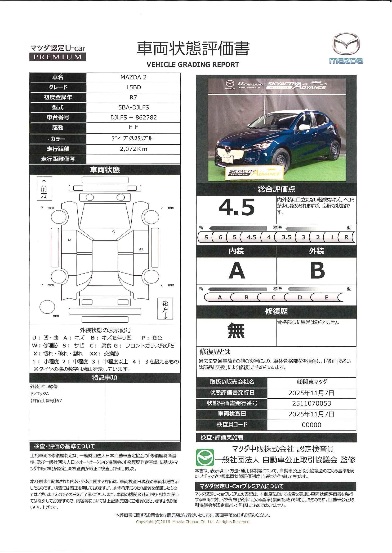 | 車両状態評価書 | ※クリックすると開きます![]() |