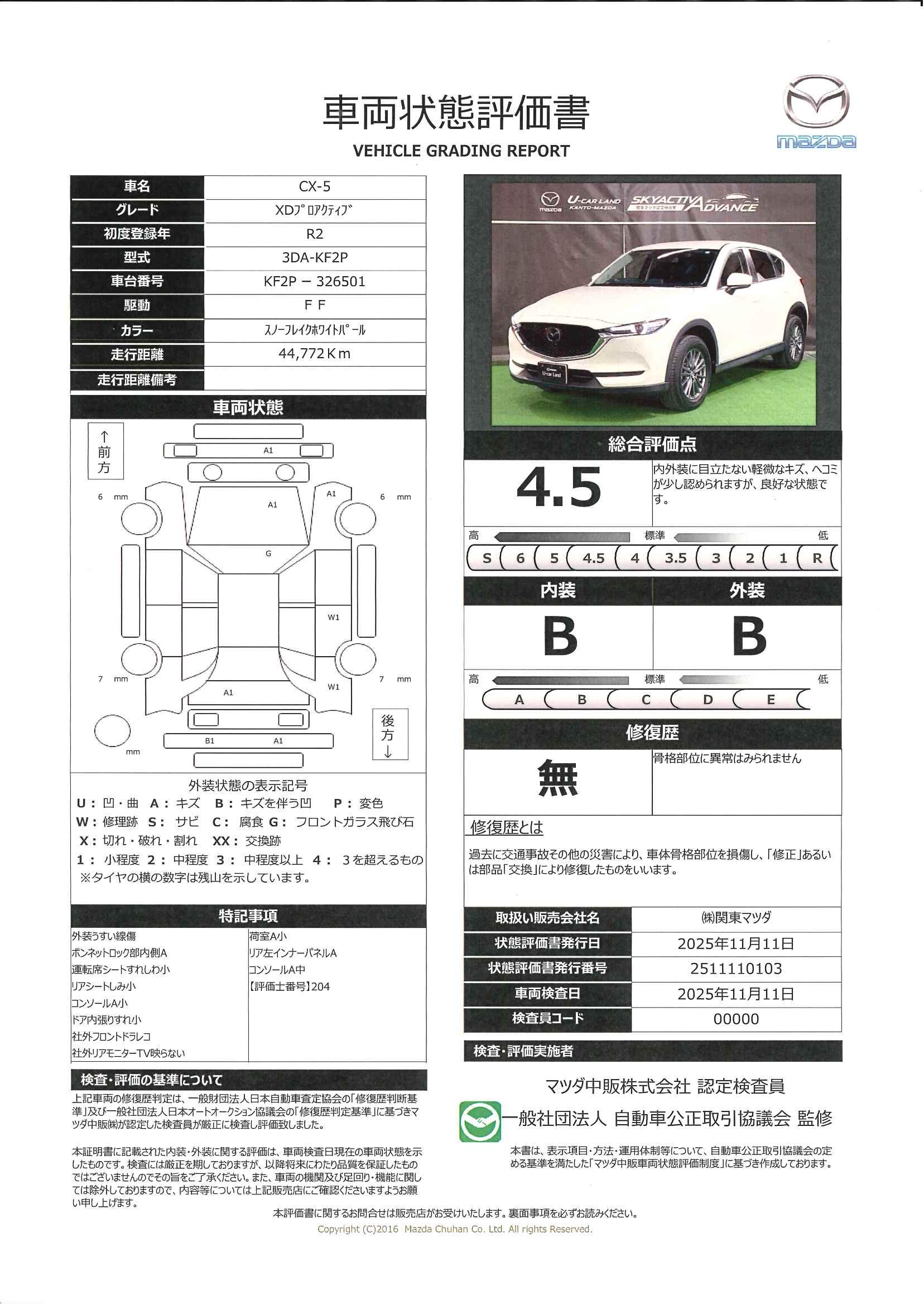 | 車両状態評価書 | ※クリックすると開きます![]() |