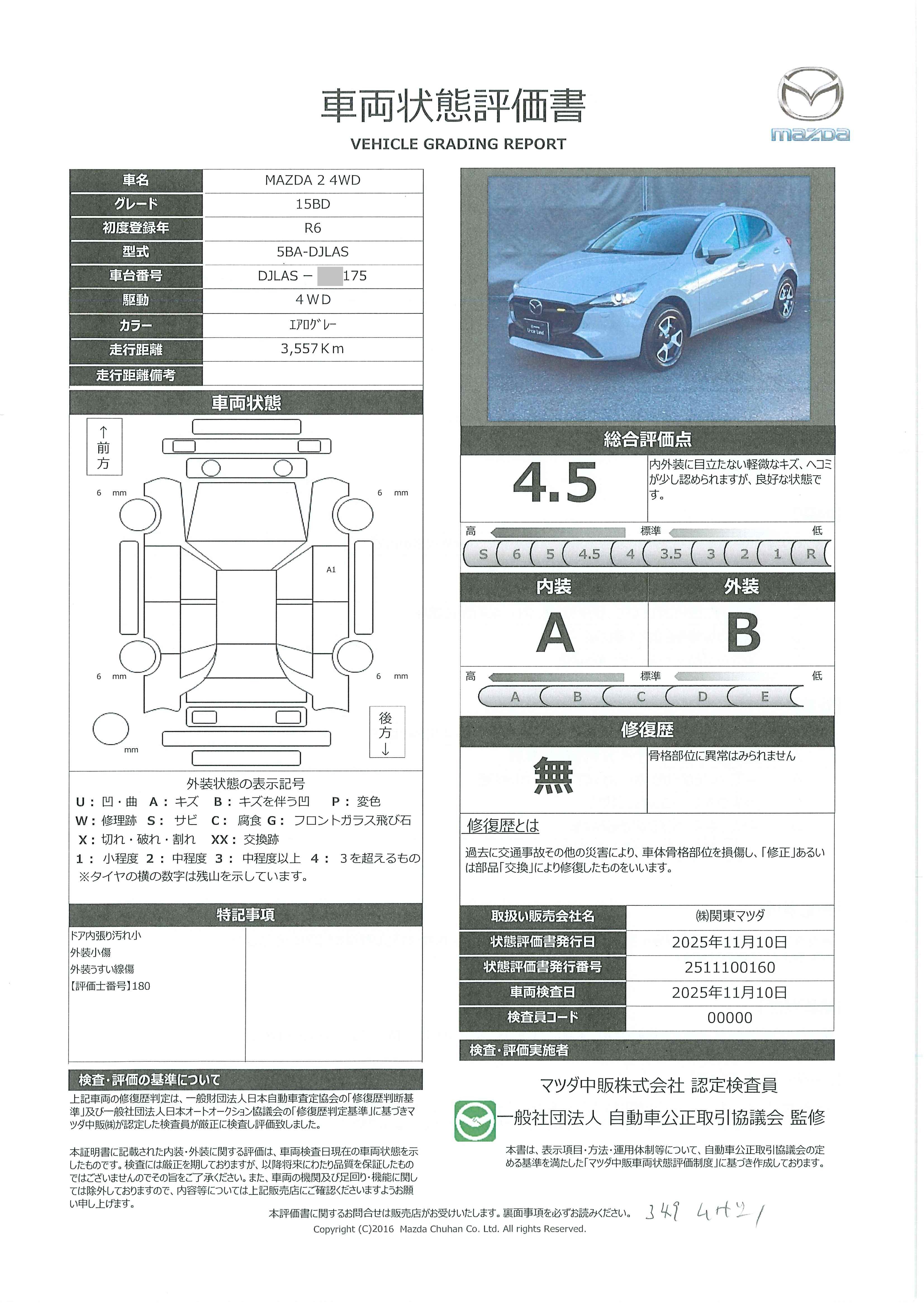 | 車両状態評価書 | ※クリックすると開きます![]() |