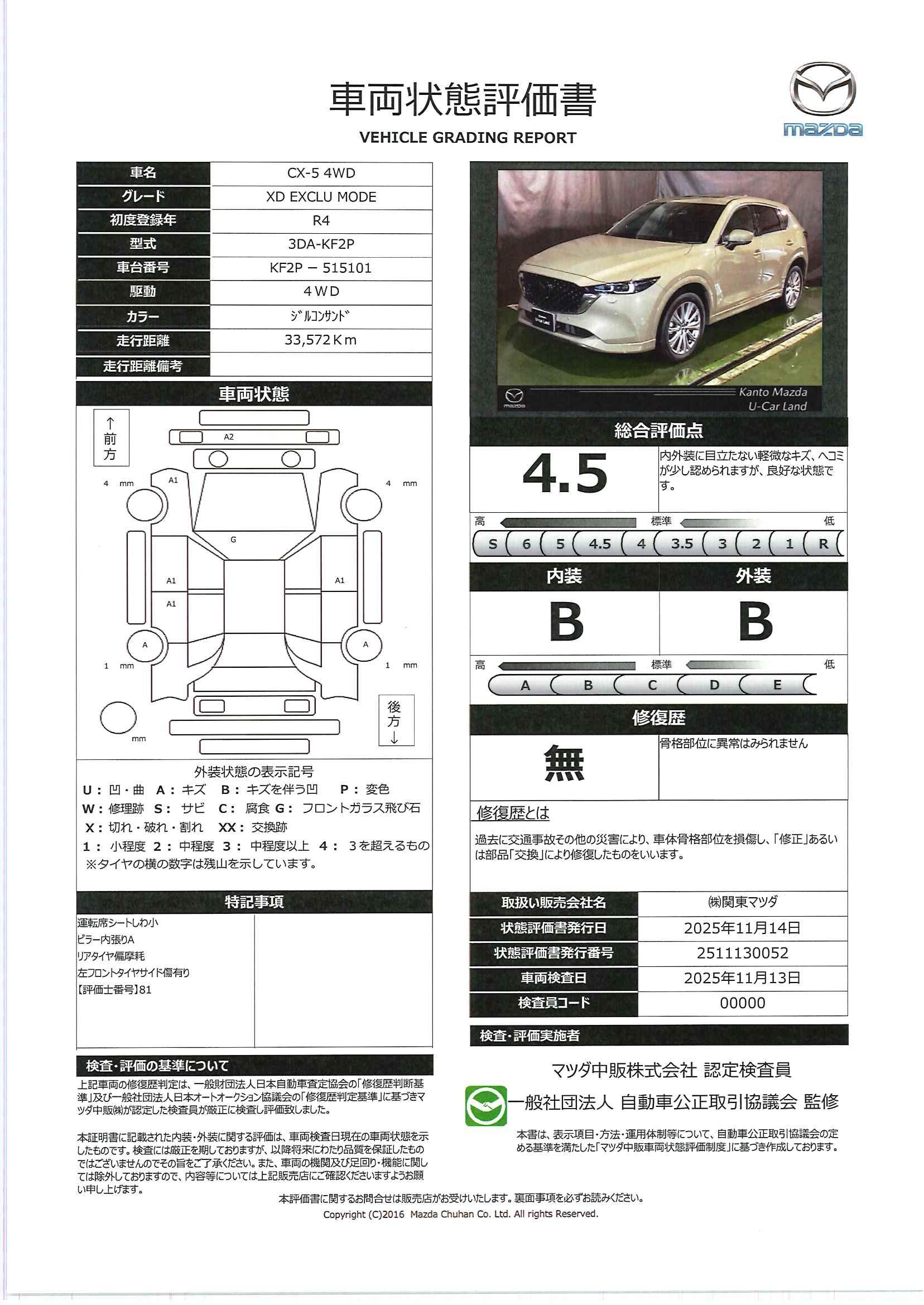 | 車両状態評価書 | ※クリックすると開きます![]() |