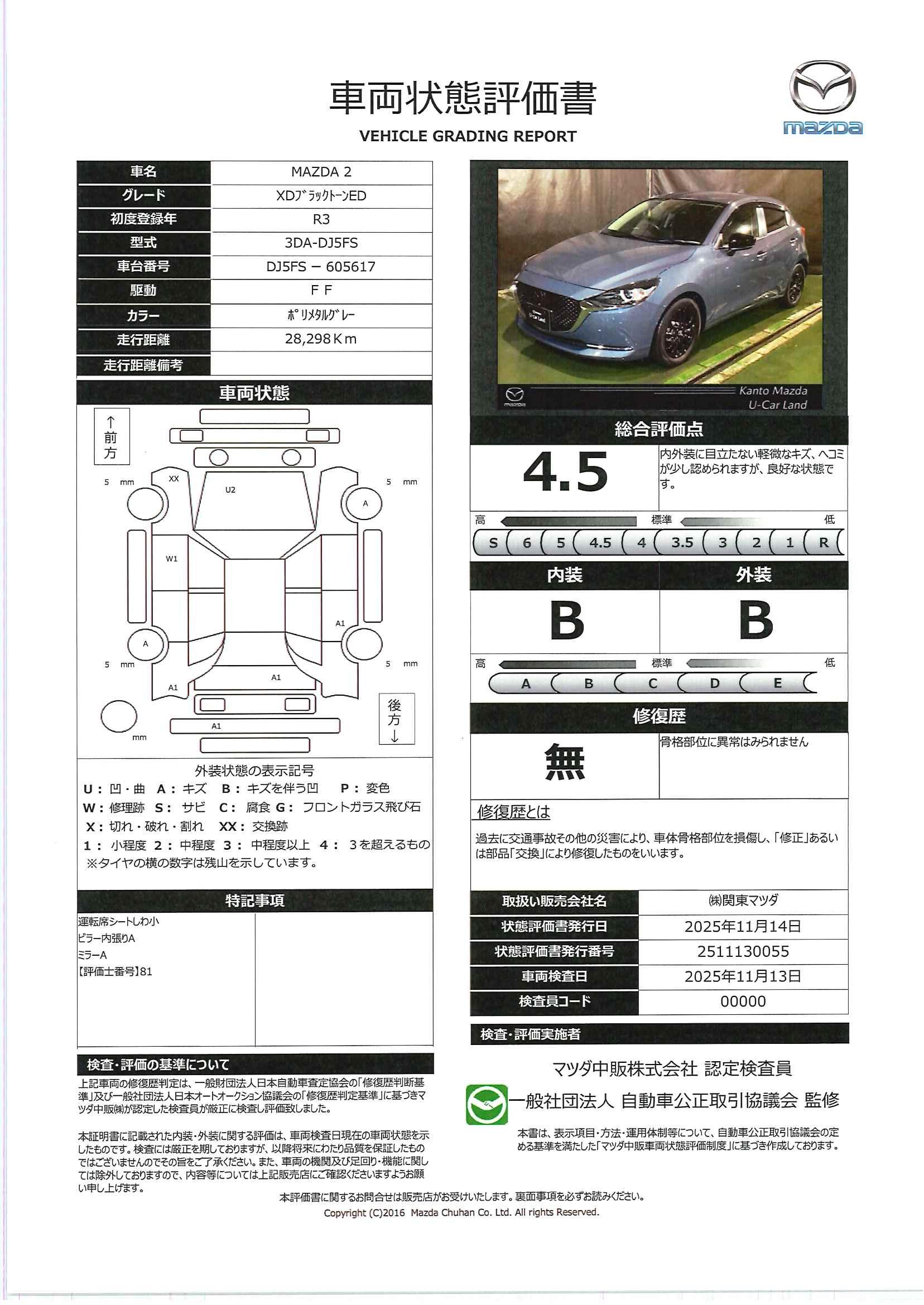 | 車両状態評価書 | ※クリックすると開きます![]() |