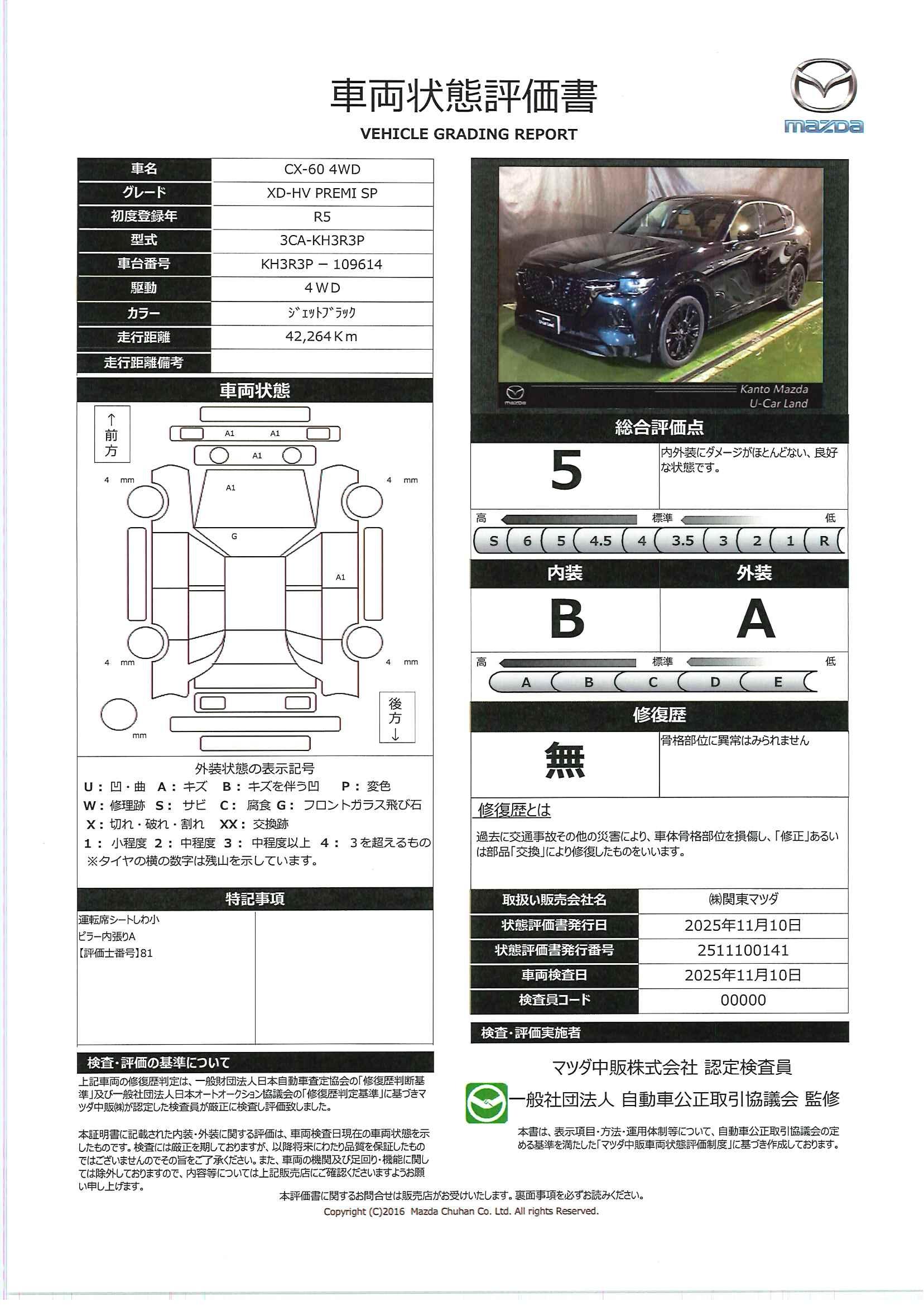| 車両状態評価書 | ※クリックすると開きます![]() |
