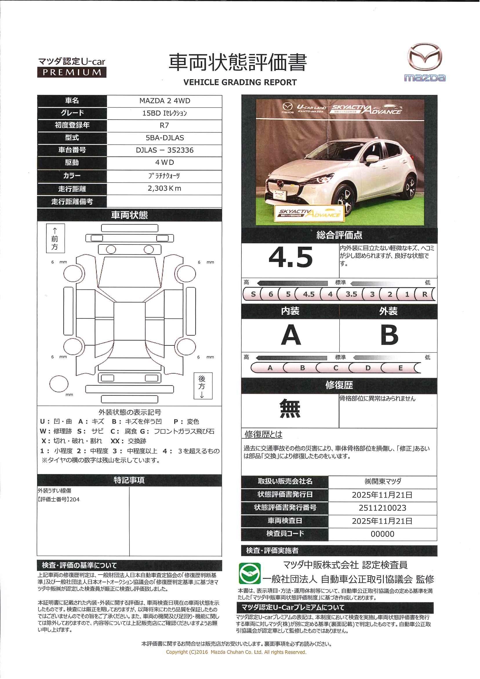 | 車両状態評価書 | ※クリックすると開きます![]() |