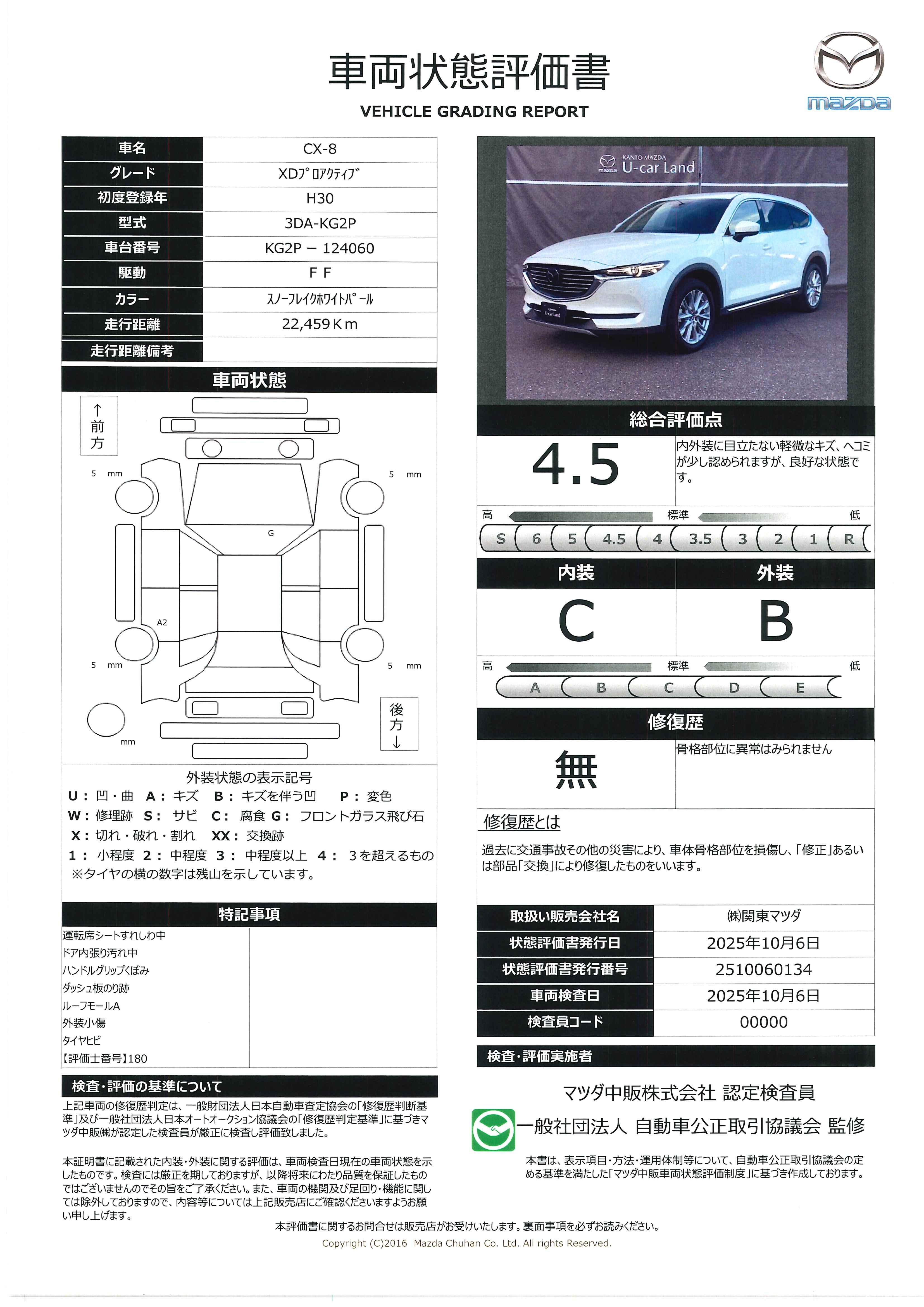 | 車両状態評価書 | ※クリックすると開きます![]() |