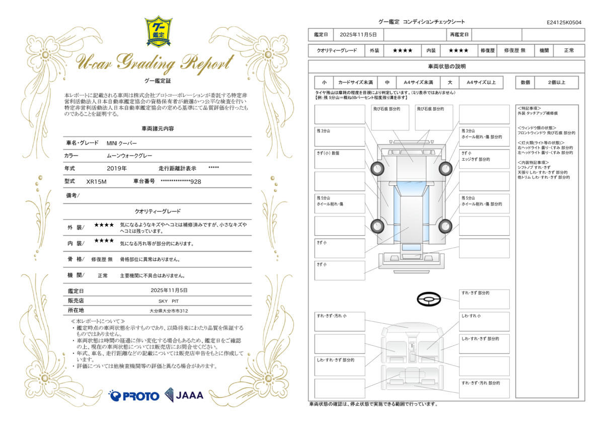 | 車両状態評価書 | ※クリックすると開きます![]() |