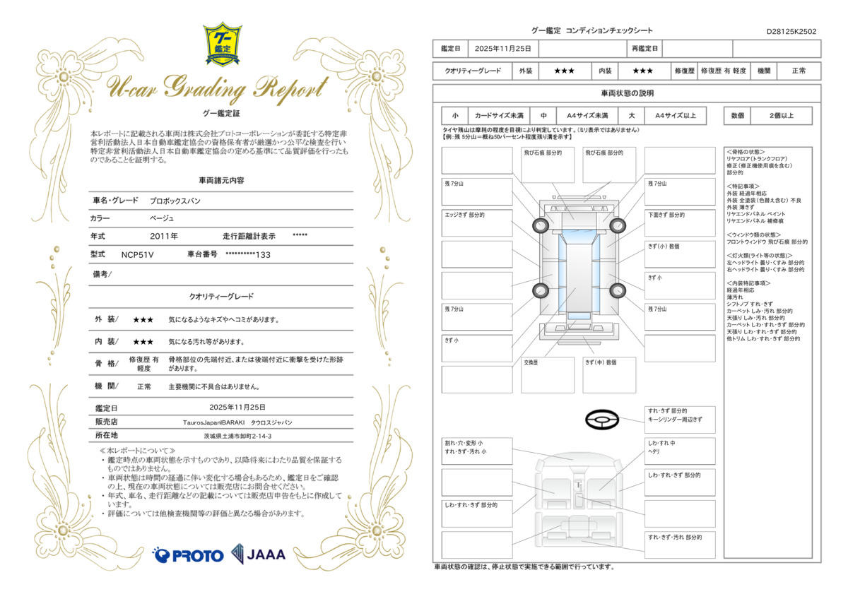 車両保証(プロボックスバン DXコンフォートパッケージ:Tauros Japan IBARAKI タウロスジャパン茨城)