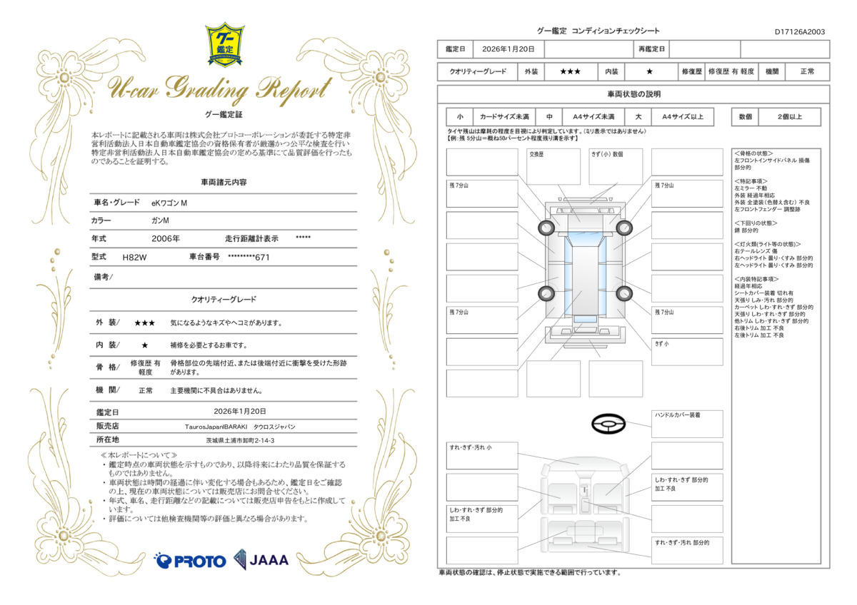 | 車両状態評価書 | ※クリックすると開きます![]() |
