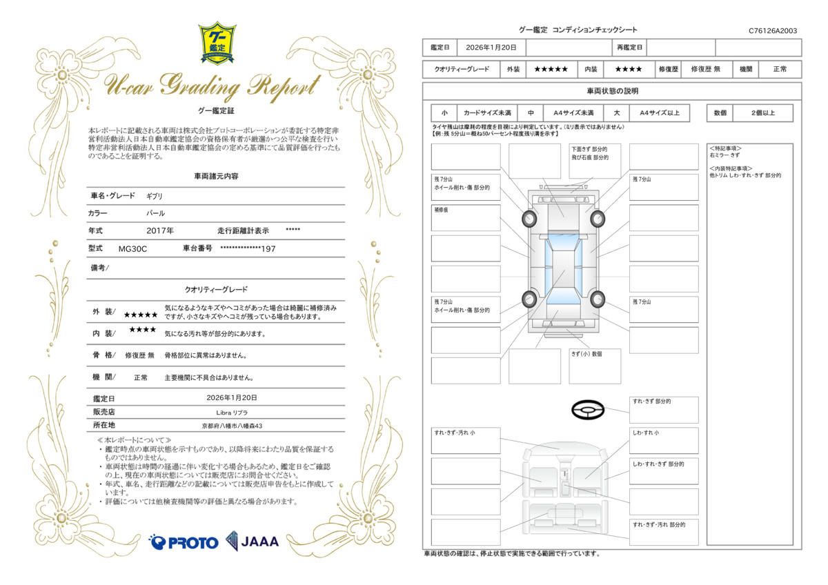 | 車両状態評価書 | ※クリックすると開きます![]() |