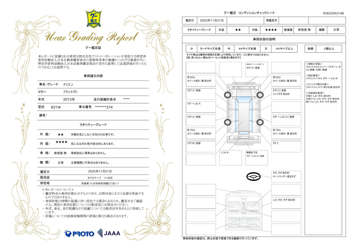 | 車両状態評価書 | ※クリックすると開きます![]() |