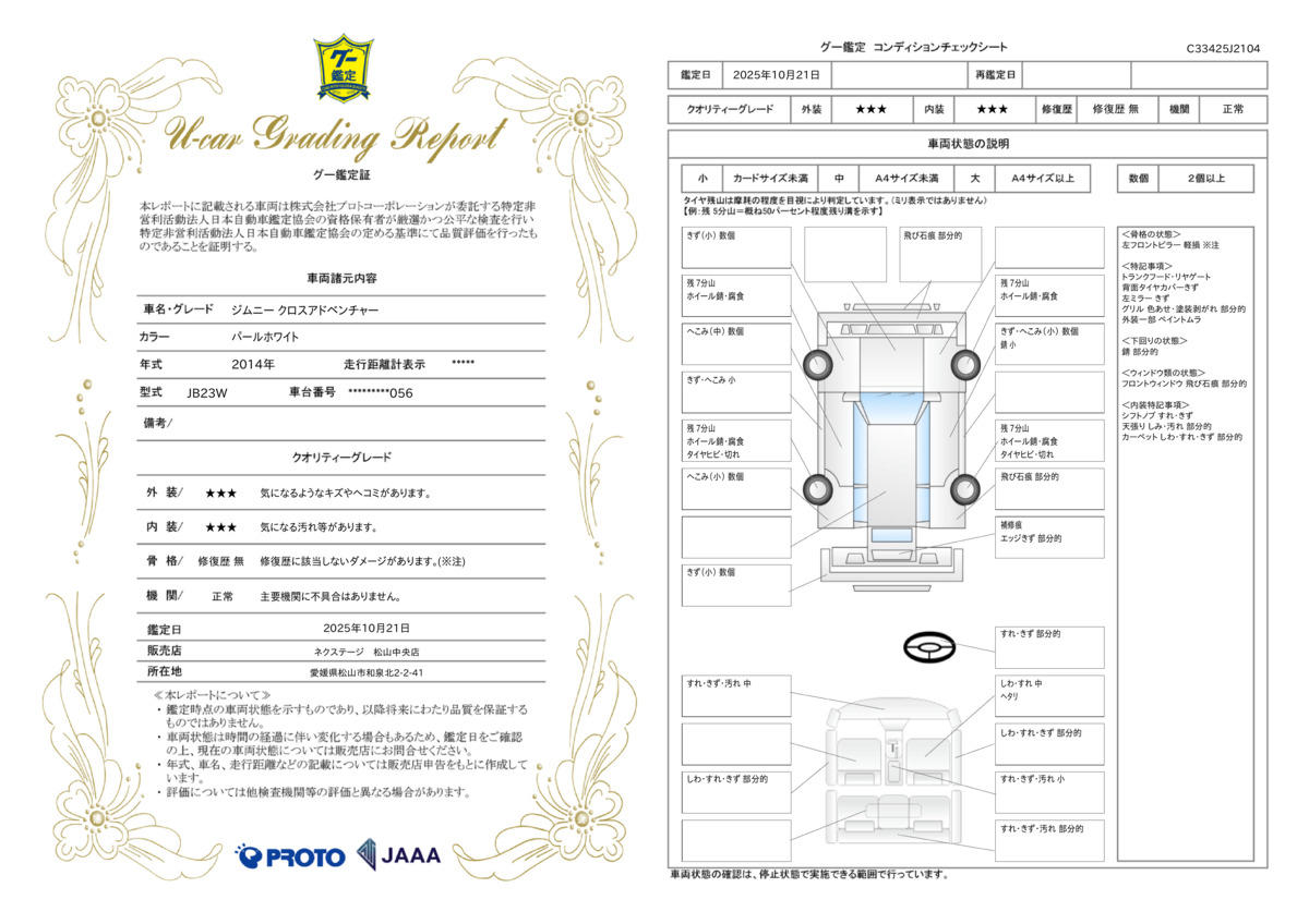 | 車両状態評価書 | ※クリックすると開きます![]() |
