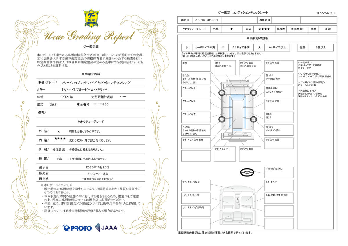 | 車両状態評価書 | ※クリックすると開きます![]() |