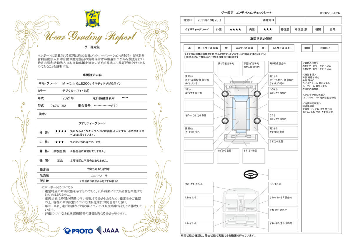 | 車両状態評価書 | ※クリックすると開きます![]() |