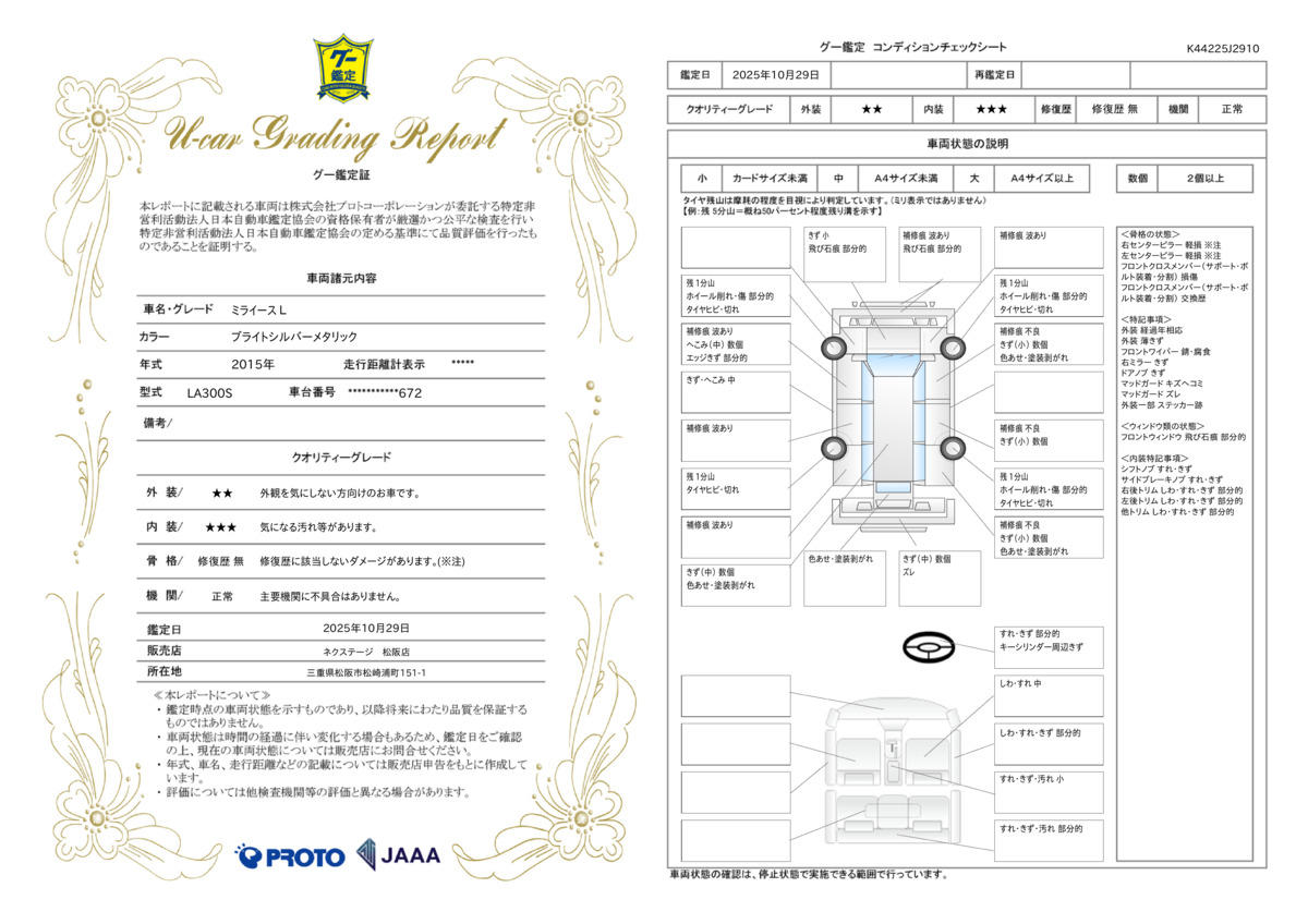 | 車両状態評価書 | ※クリックすると開きます![]() |