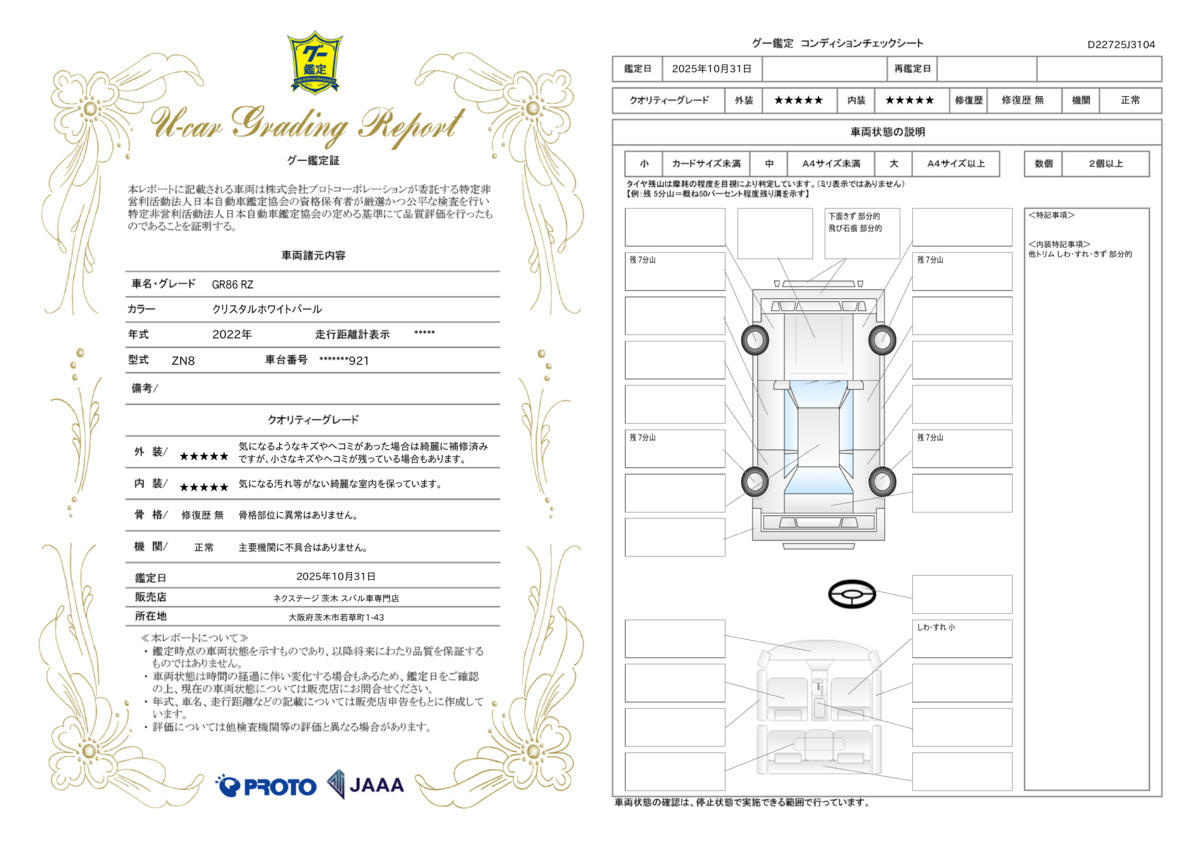 | 車両状態評価書 | ※クリックすると開きます![]() |