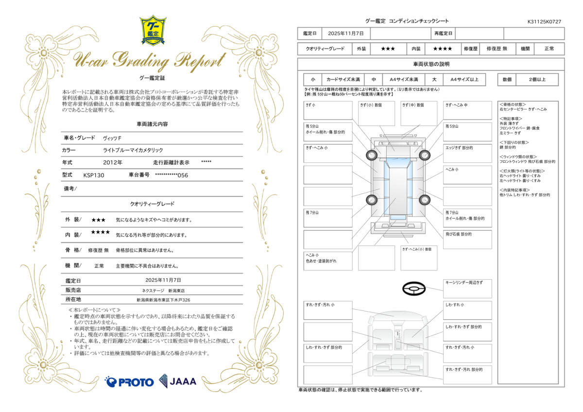 | 車両状態評価書 | ※クリックすると開きます![]() |