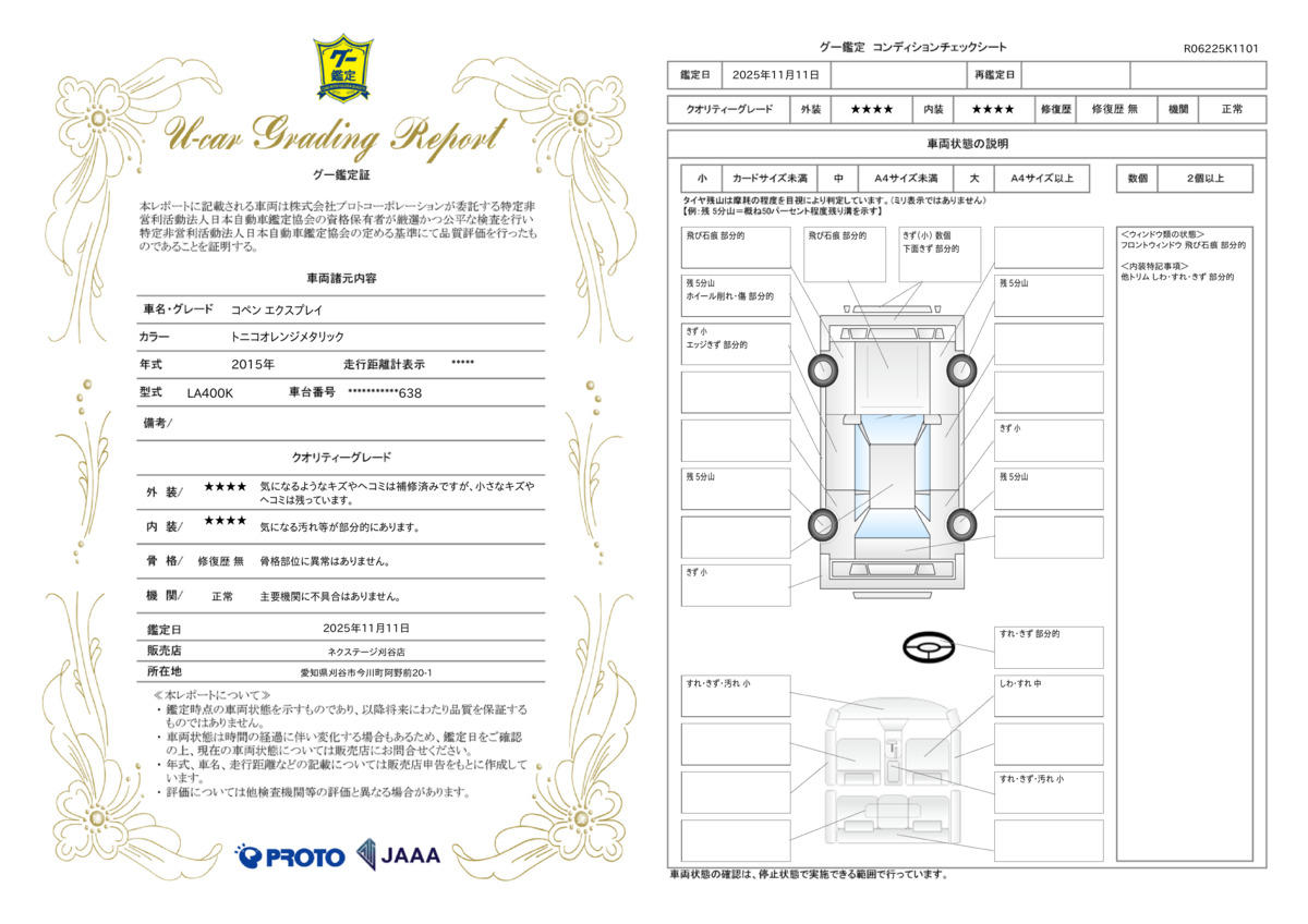 | 車両状態評価書 | ※クリックすると開きます![]() |
