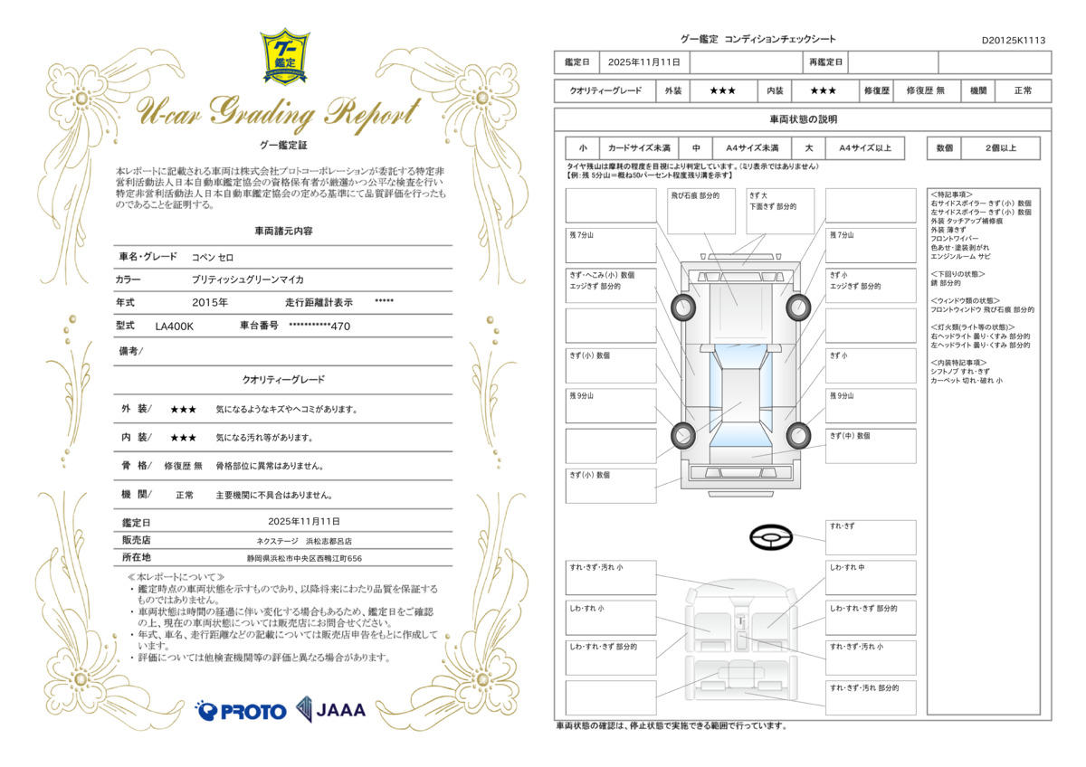 | 車両状態評価書 | ※クリックすると開きます![]() |
