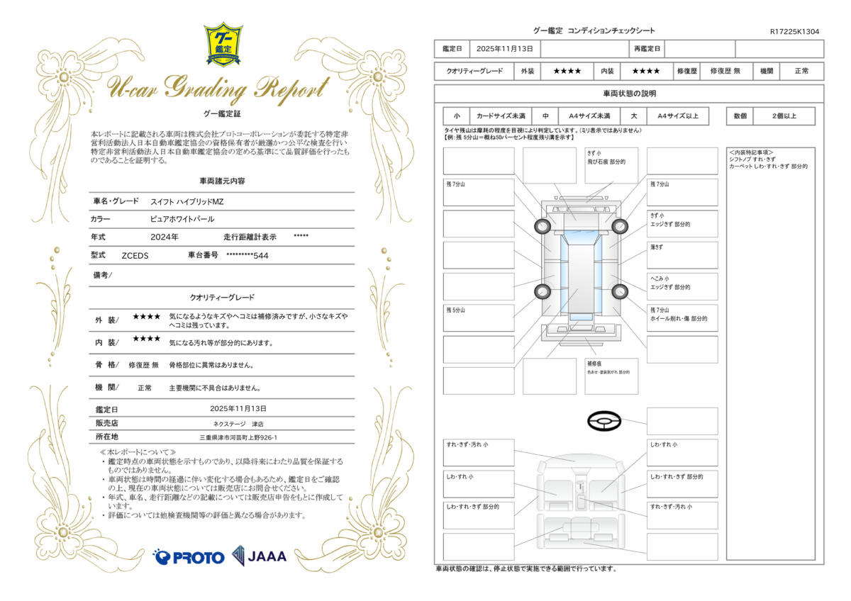 | 車両状態評価書 | ※クリックすると開きます![]() |