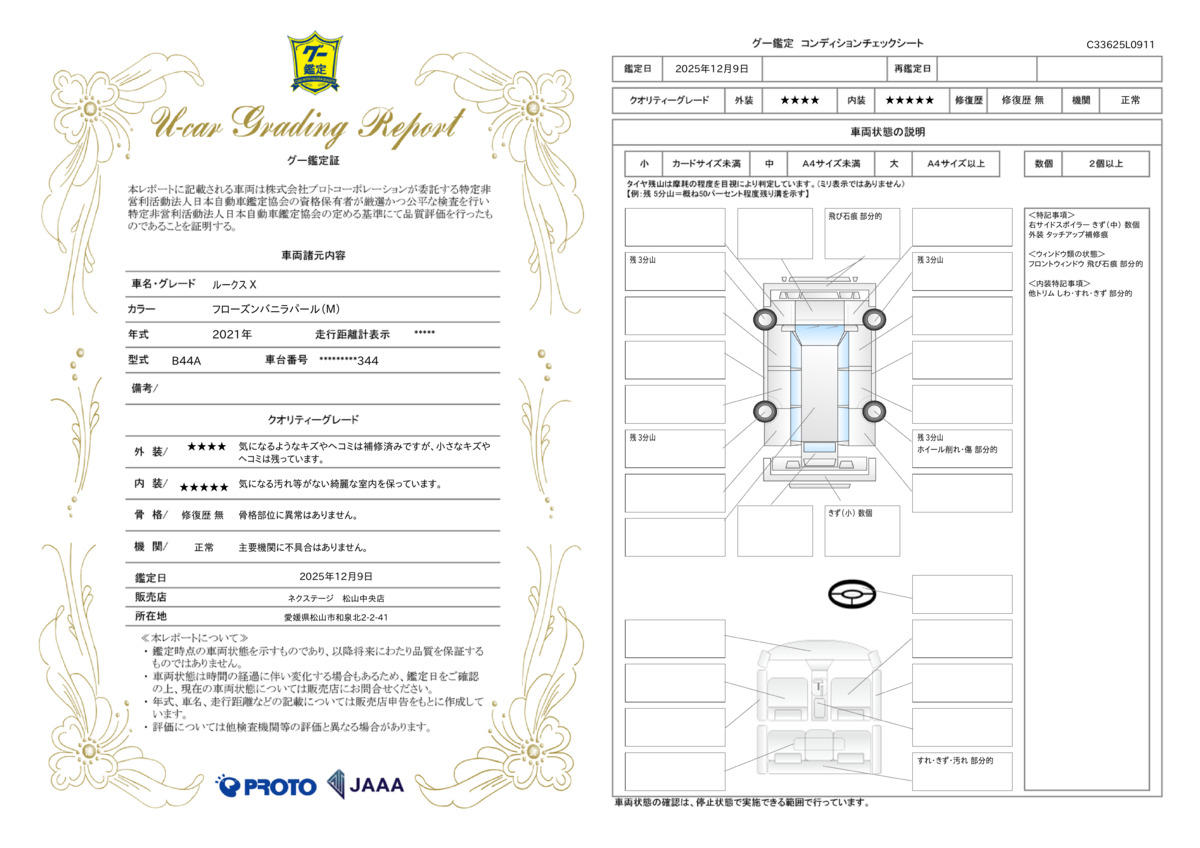 | 車両状態評価書 | ※クリックすると開きます![]() |