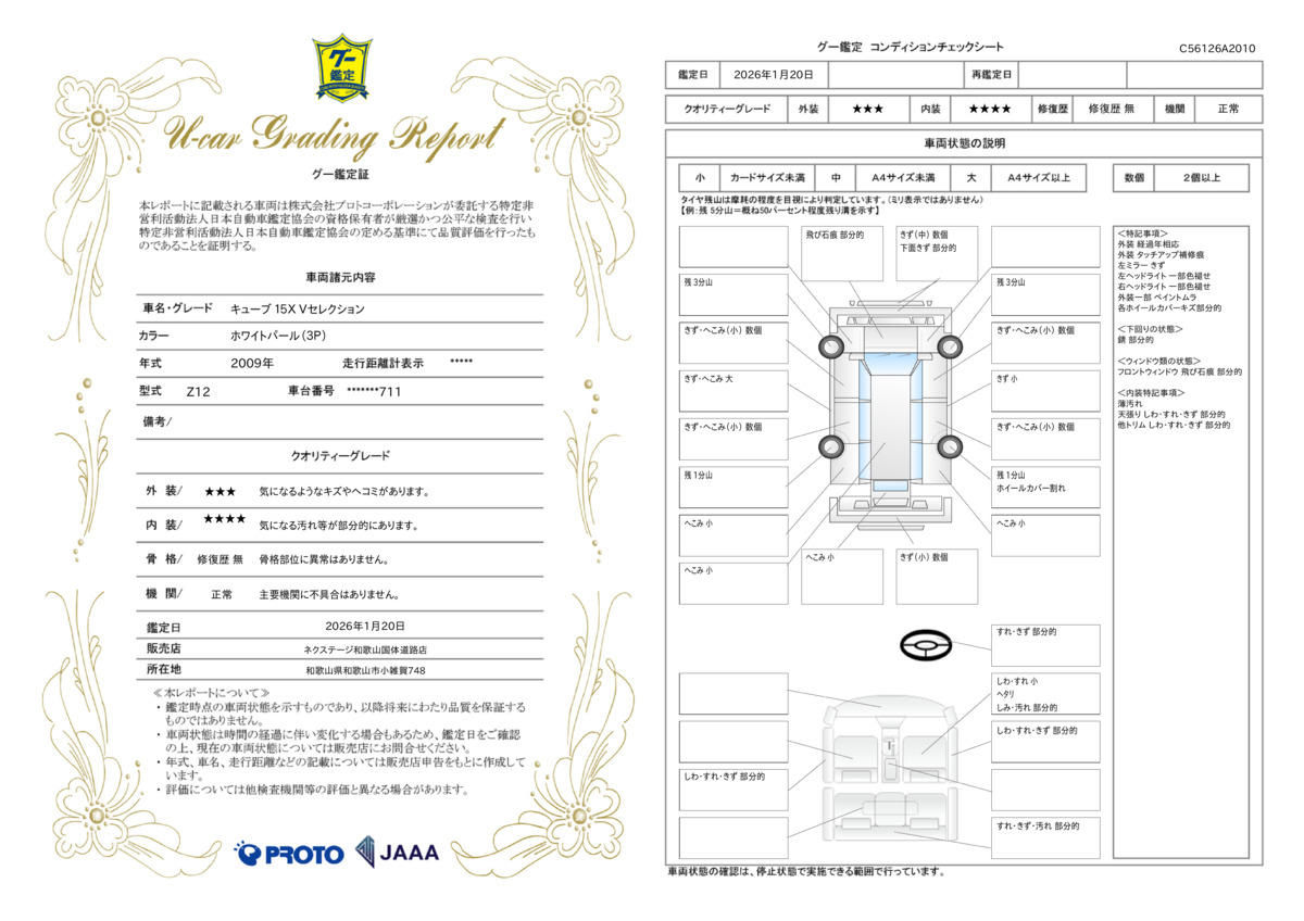 | 車両状態評価書 | ※クリックすると開きます![]() |