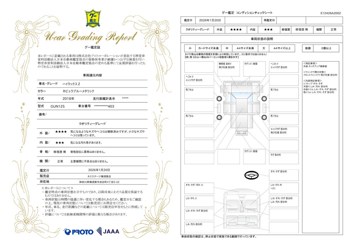 | 車両状態評価書 | ※クリックすると開きます![]() |
